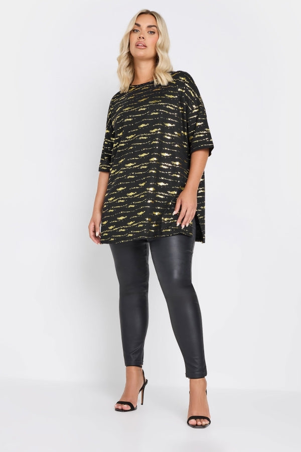 Büyük Beden Kısa Kollu Bisiklet Yaka Baskılı Yırtmaçlı Uzun T-shirt 303664