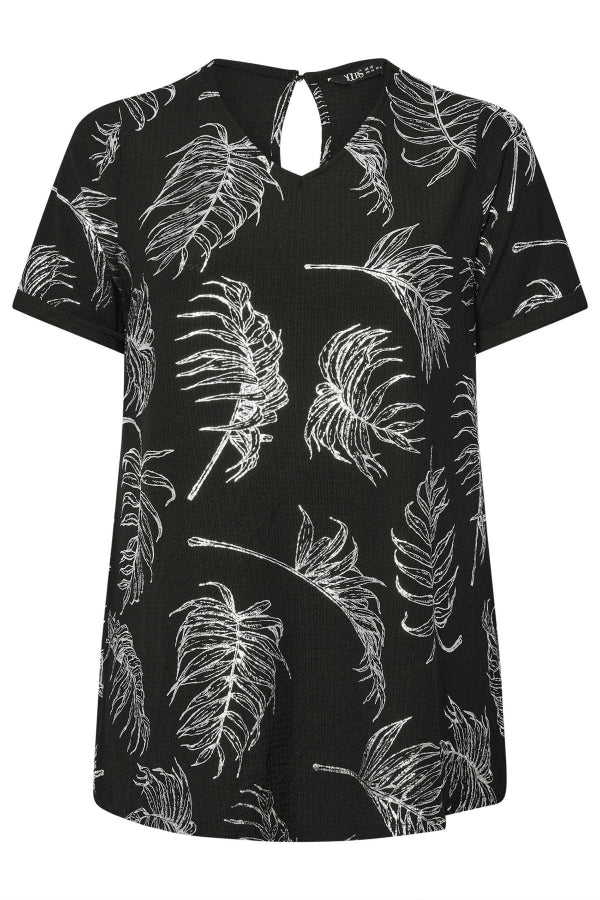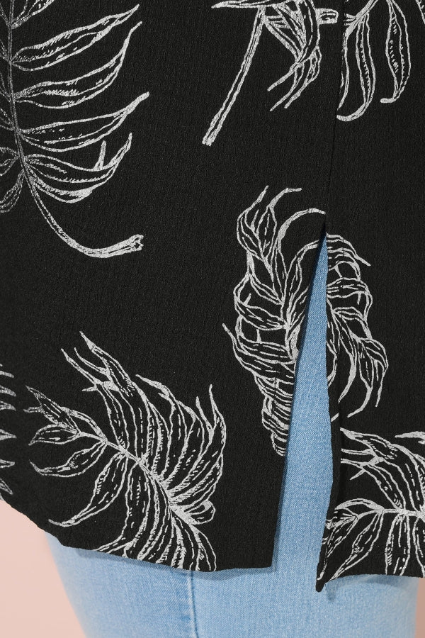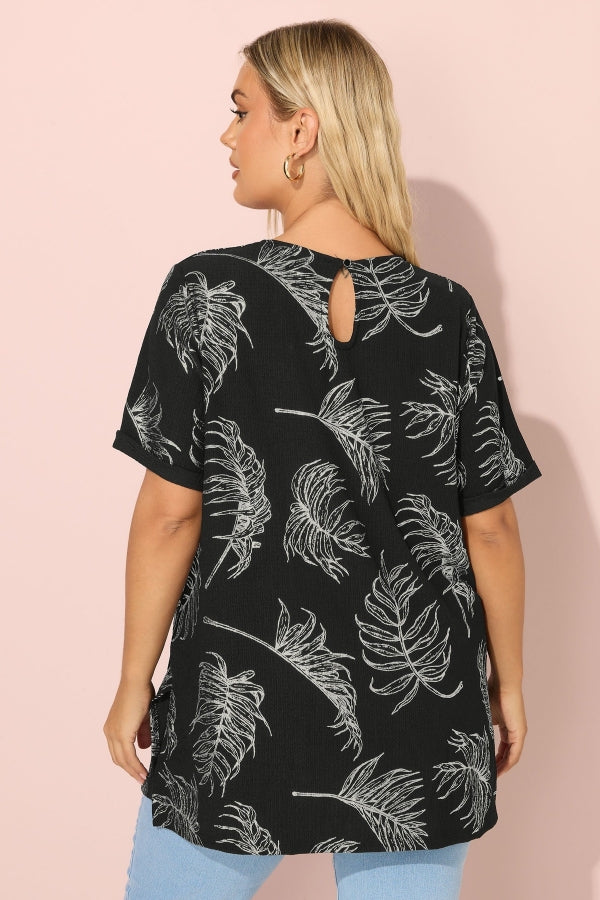 Büyük Beden Kısa Kollu Bisiklet Yaka Baskılı Yırtmaçlı Uzun T-shirt 303780