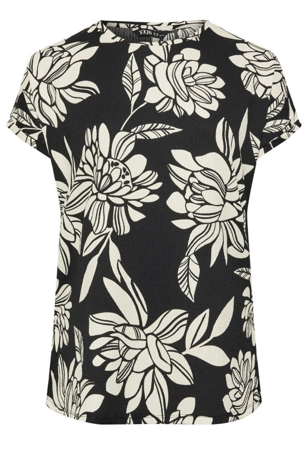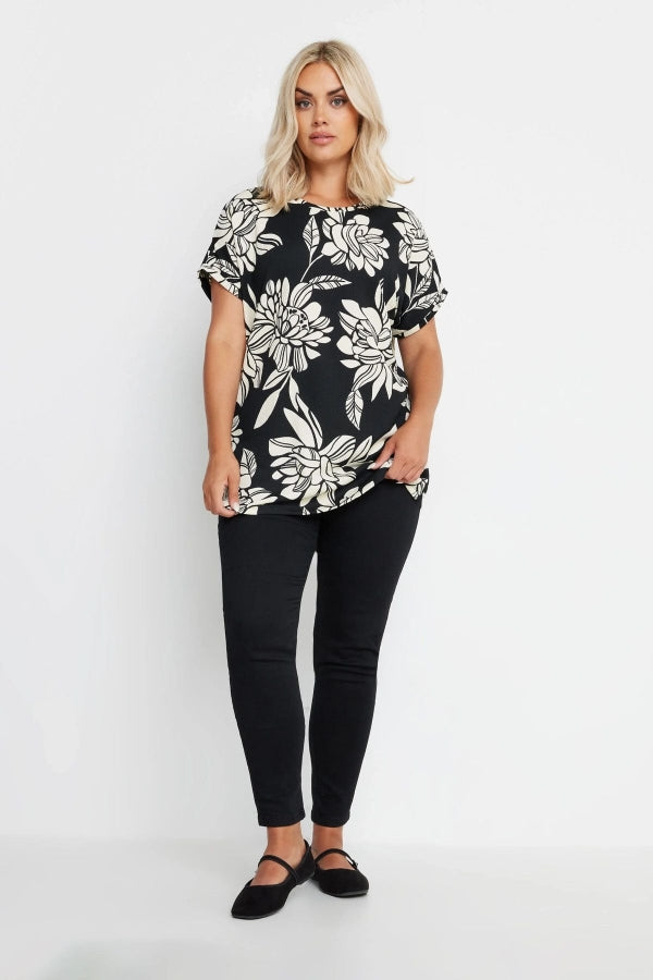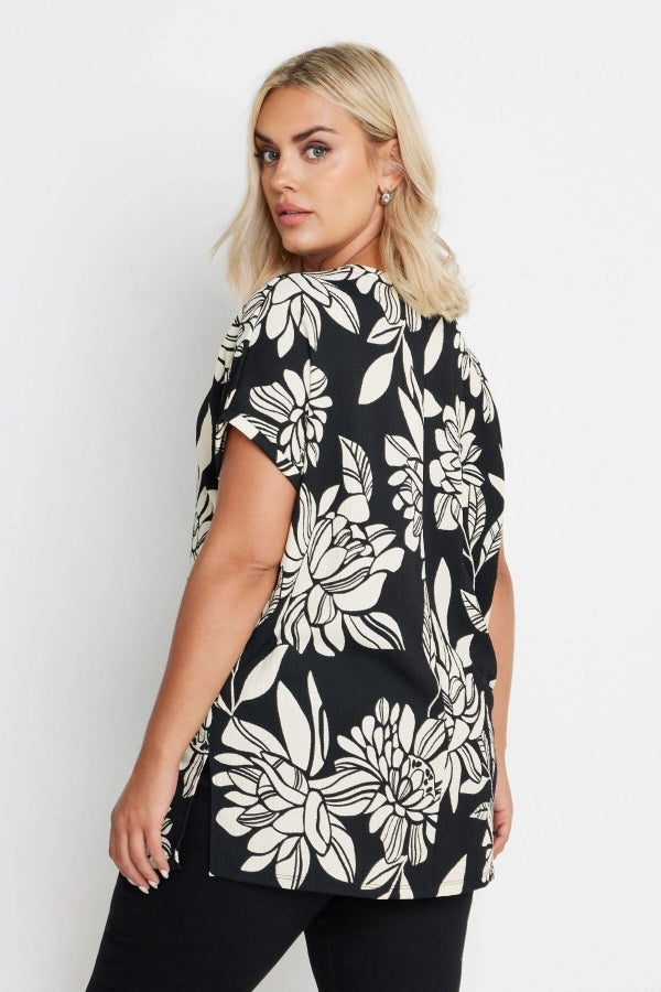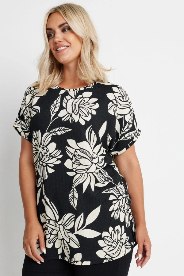 Büyük Beden Kısa Kollu Bisiklet Yaka Çiçek Desenli Bluz 322001