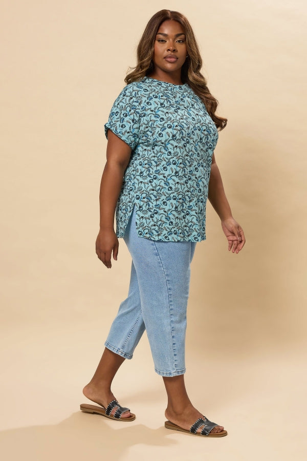 Büyük Beden Kısa Kollu Bisiklet Yaka Çini Desenli T-shirt 304190