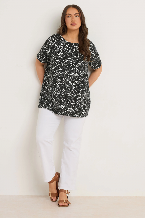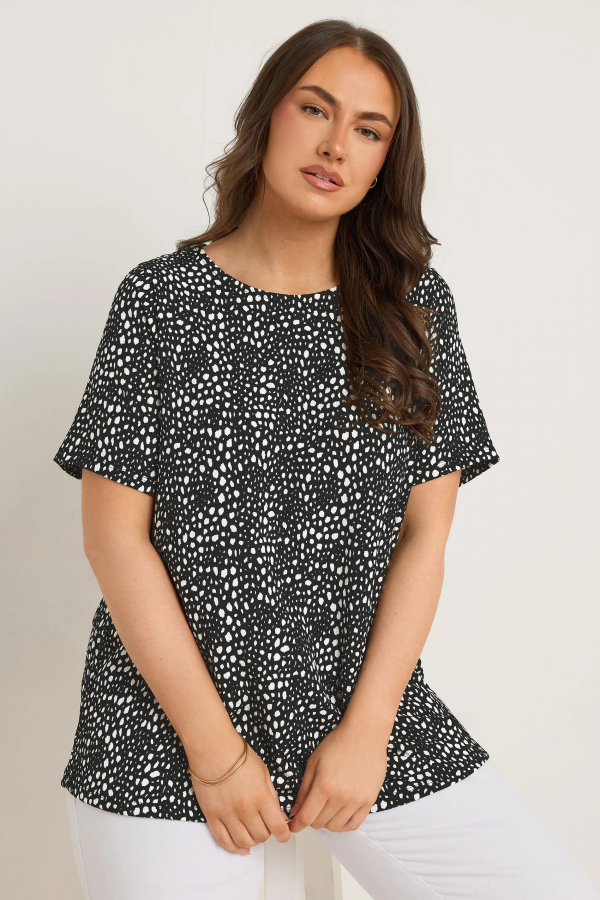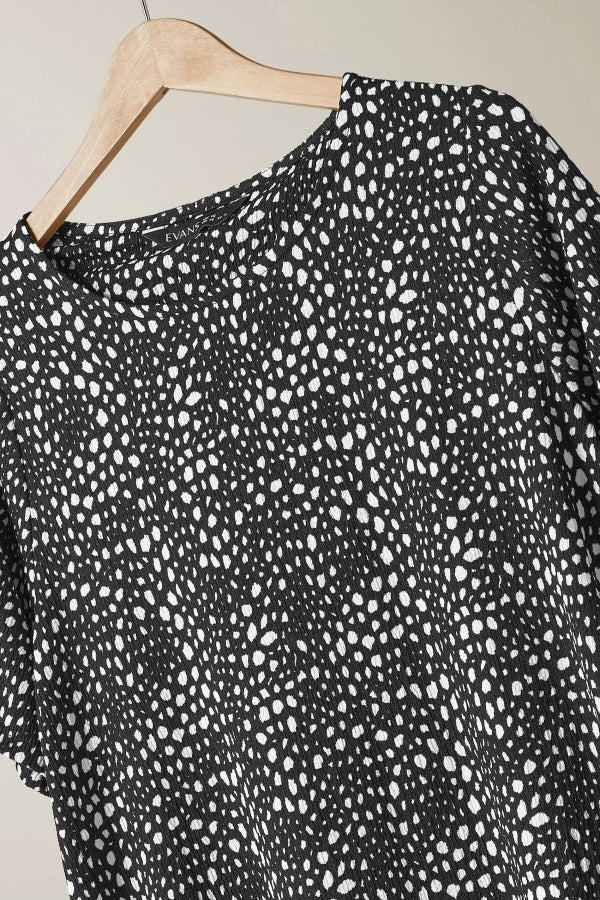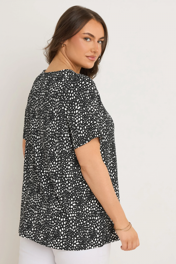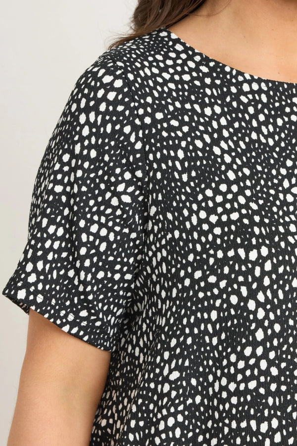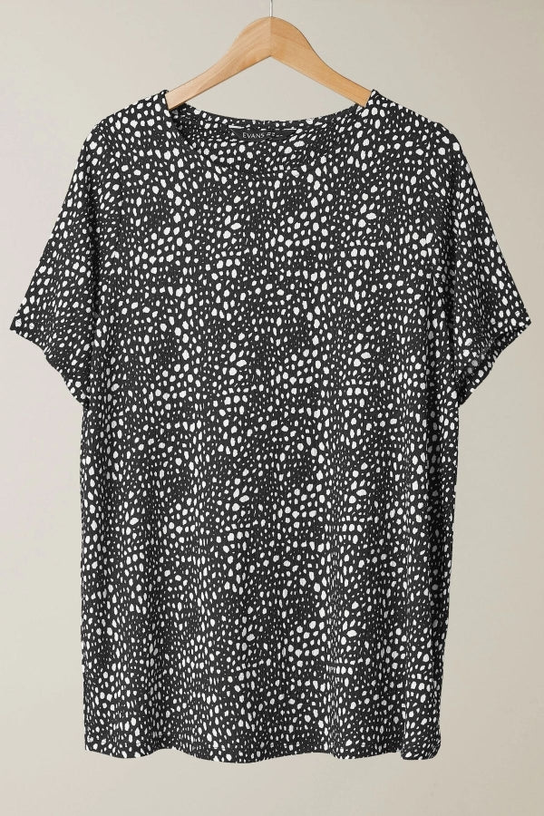 Büyük Beden Kısa Kollu Bisiklet Yaka Desenli Bluz 615913