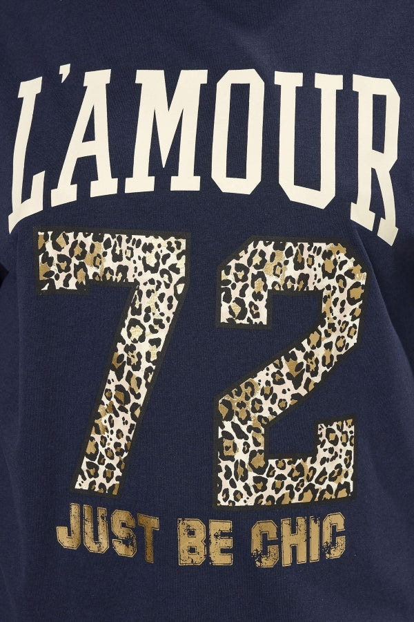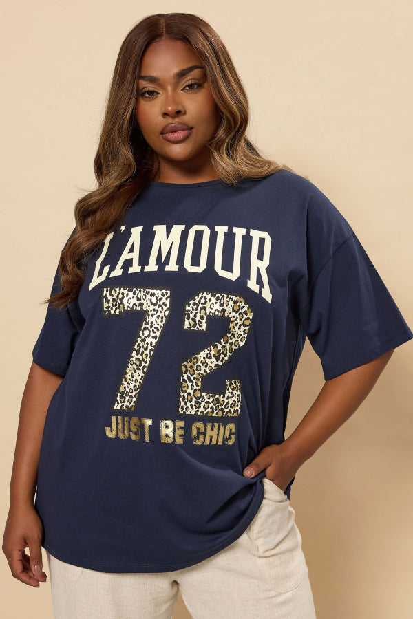 Büyük Beden Kısa Kollu Bisiklet Yaka Metalik Baskılı T-shirt 304180