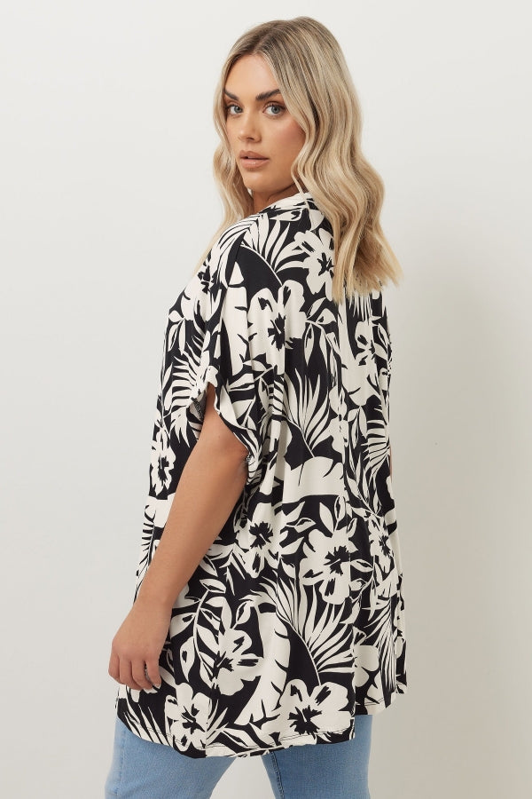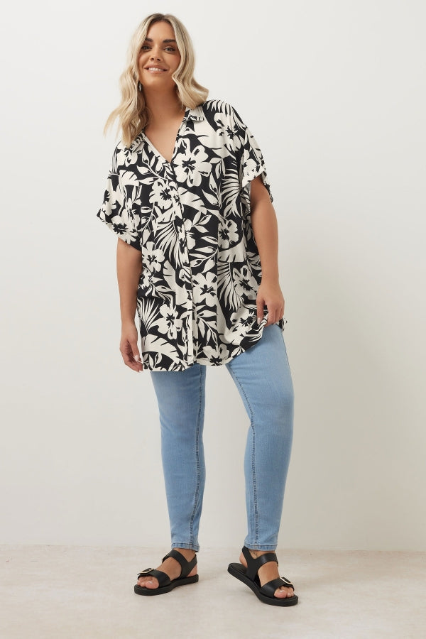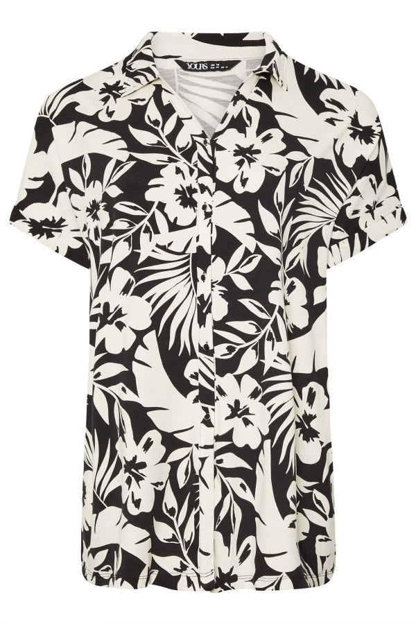 Büyük Beden Kısa Kollu Çiçek Desenli Gömlek 303686