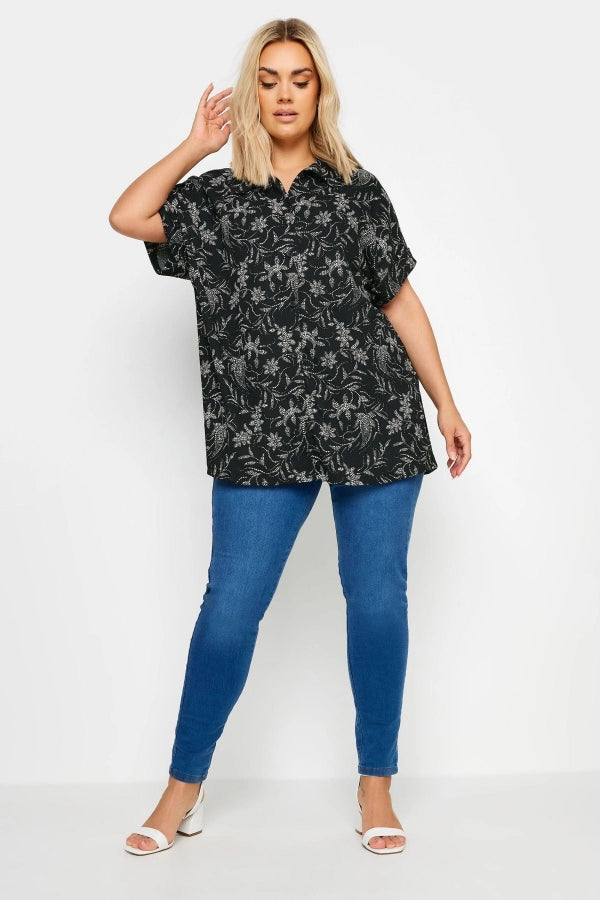 Büyük Beden Kısa Kollu Desenli Düğmeli Gömlek 303356