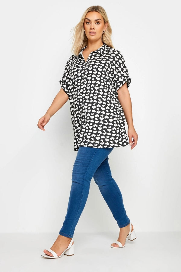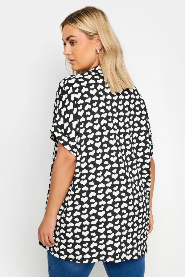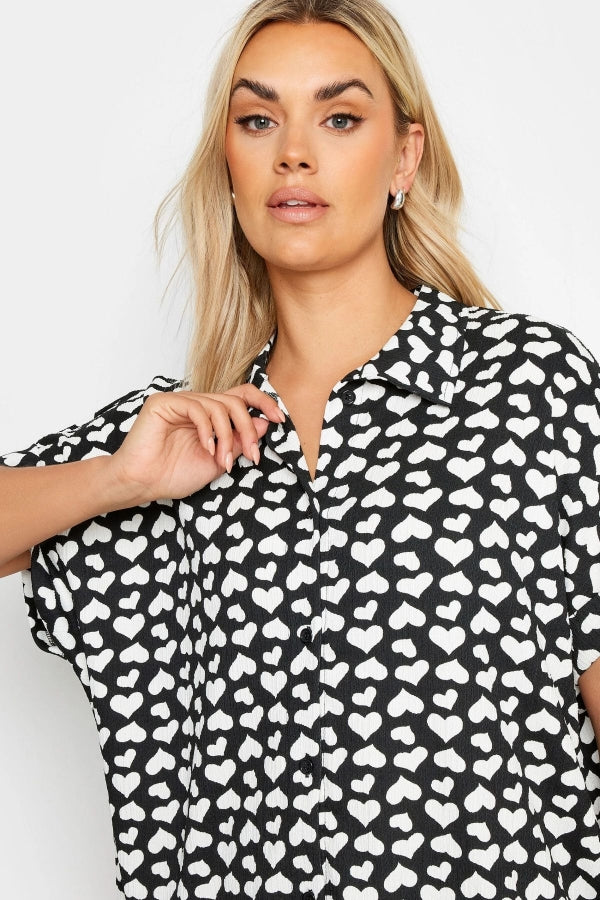 Büyük Beden Kısa Kollu Desenli Düğmeli Gömlek 303357