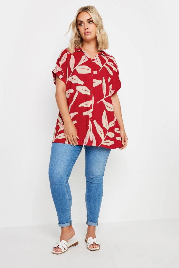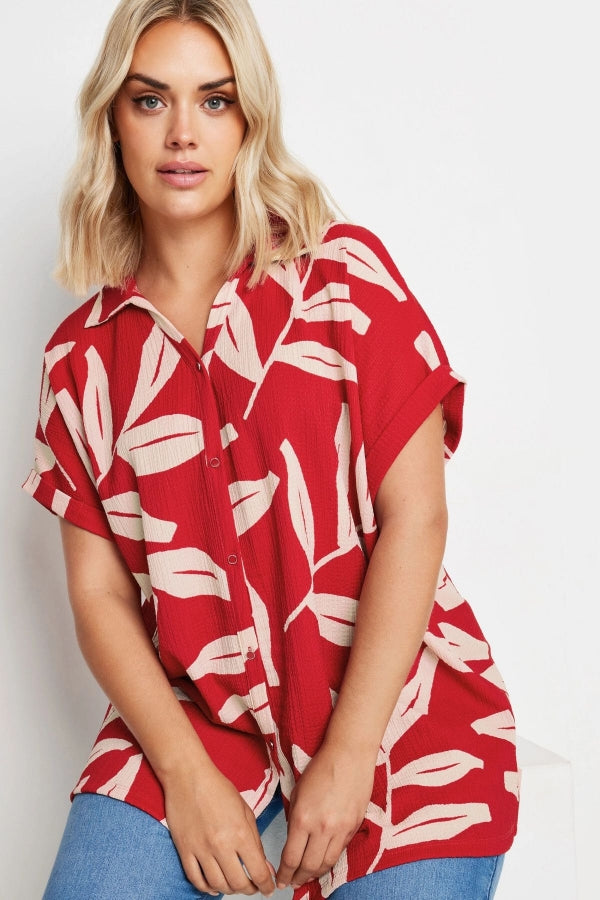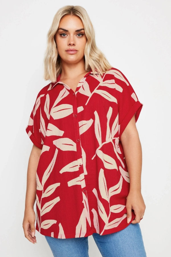 Büyük Beden Kısa Kollu Desenli Düğmeli Gömlek 321827