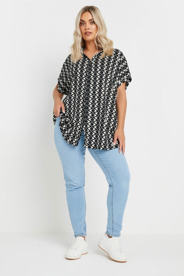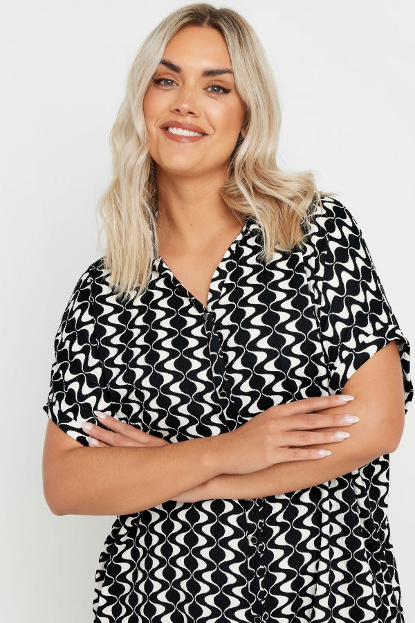 Büyük Beden Kısa Kollu Desenli Gömlek 303962