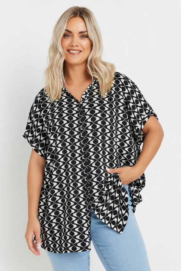 Büyük Beden Kısa Kollu Desenli Gömlek 303962