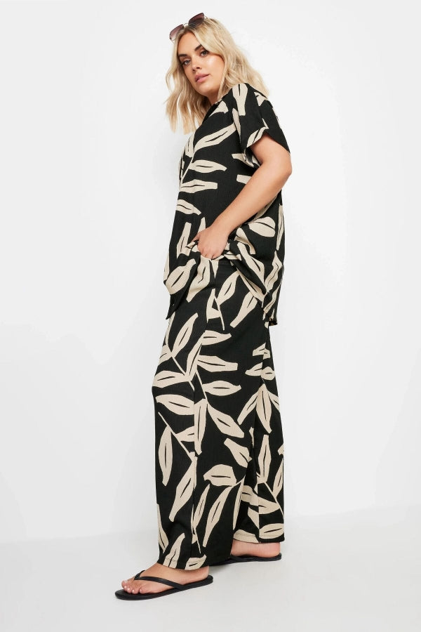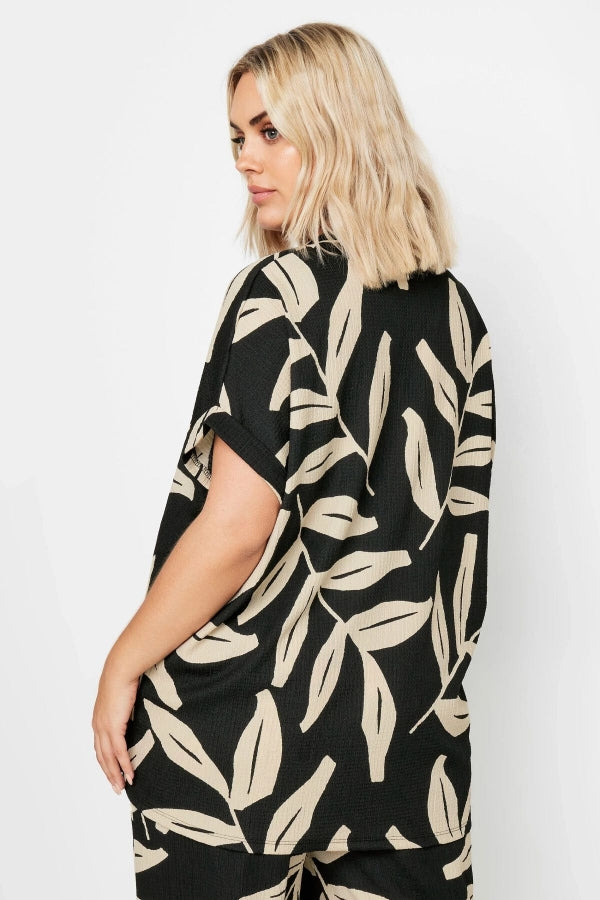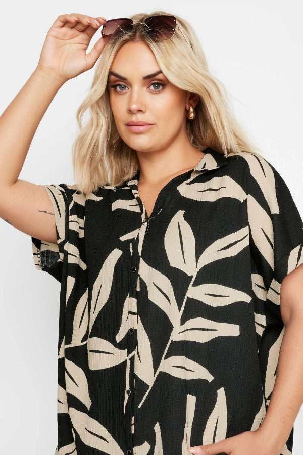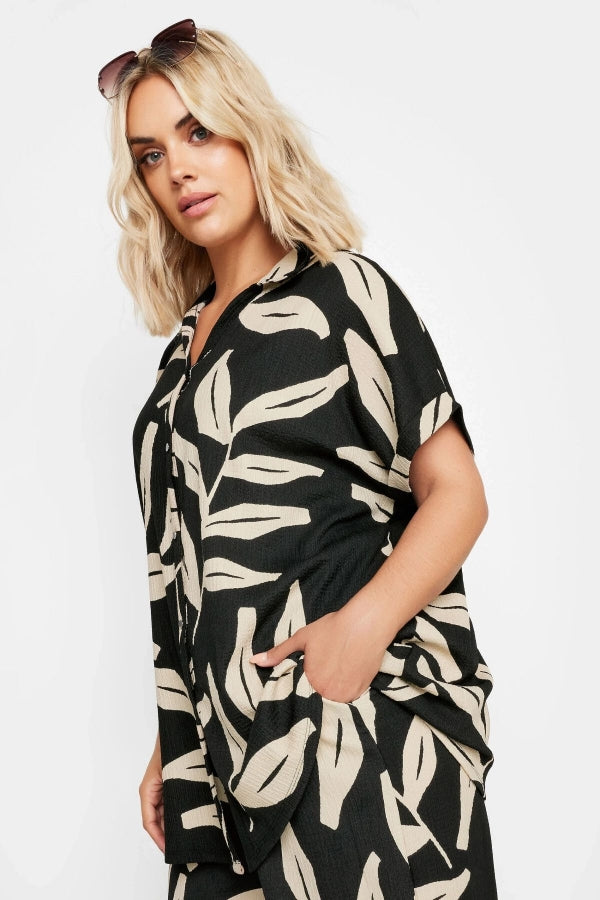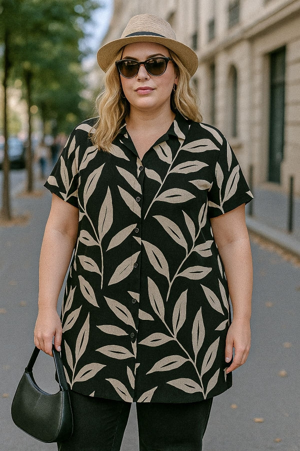 Büyük Beden Kısa Kollu Önü Düğmeli Desenli Gömlek 321855