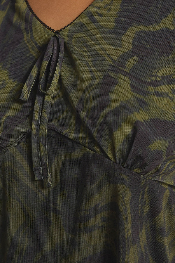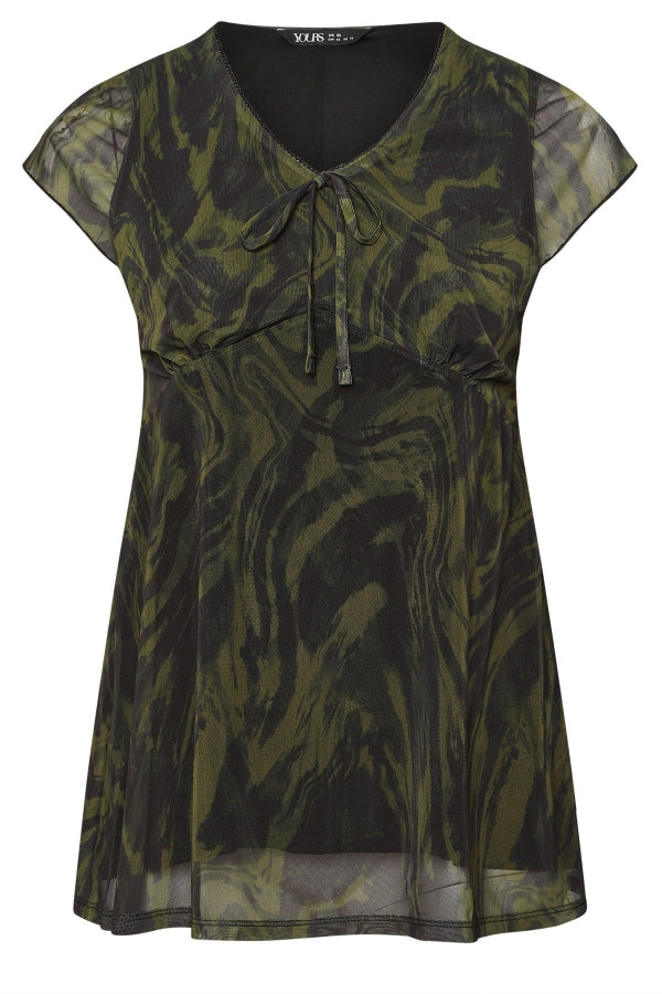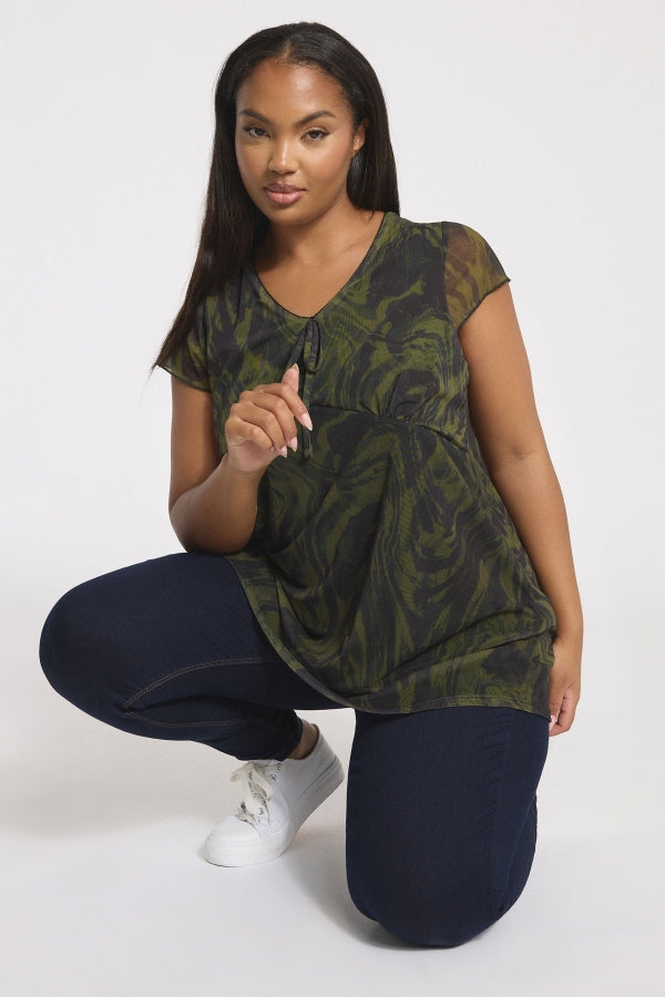 Büyük Beden Kısa Kollu V Yaka Astarlı Transparan T-shirt 304315