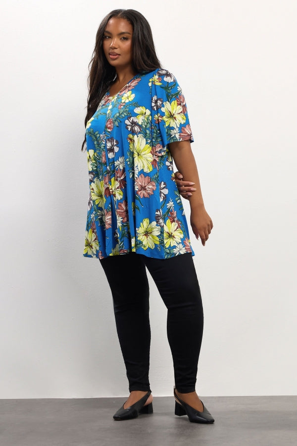 Büyük Beden Kısa Kollu V Yaka Baskılı T-shirt 304339