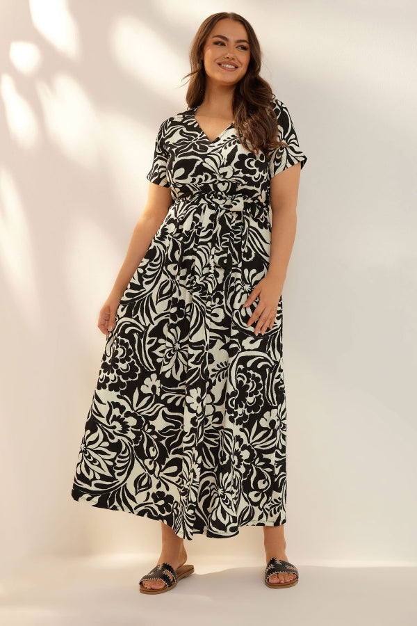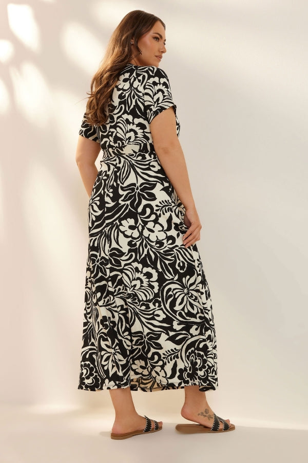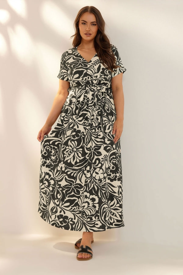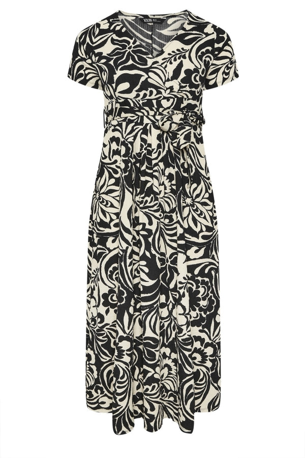 Büyük Beden Kısa Kollu V Yaka Kuşaklı Anvelop Elbise 304073