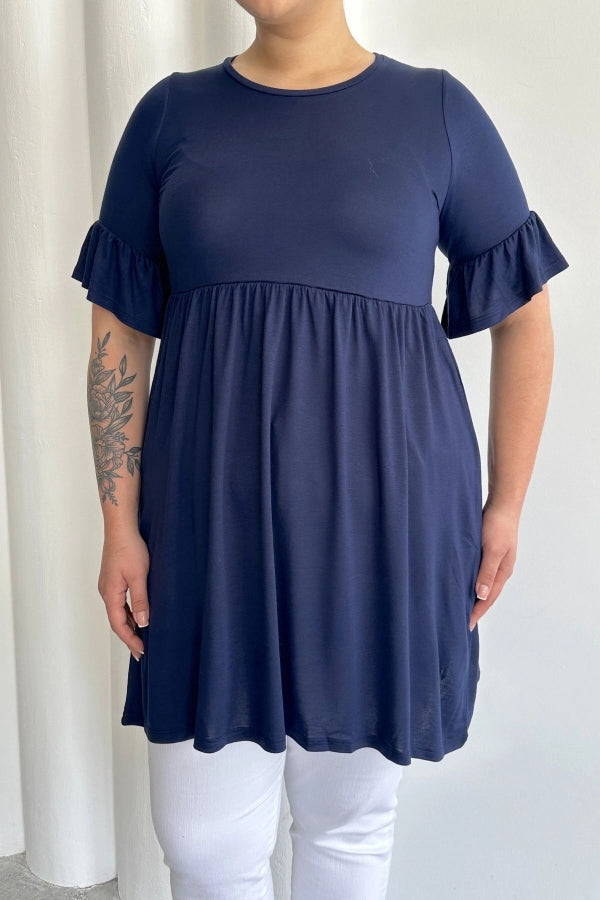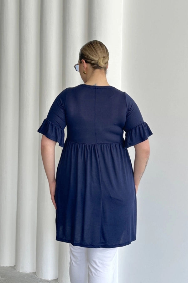 Büyük Beden Kol Detaylı Beli Lastikli Pileli Tunik T-shirt T42