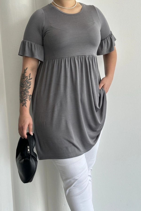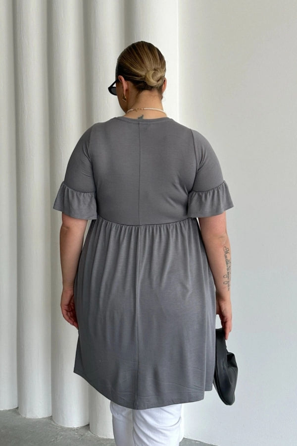 Büyük Beden Kol Detaylı Beli Lastikli Pileli Tunik T-shirt T43