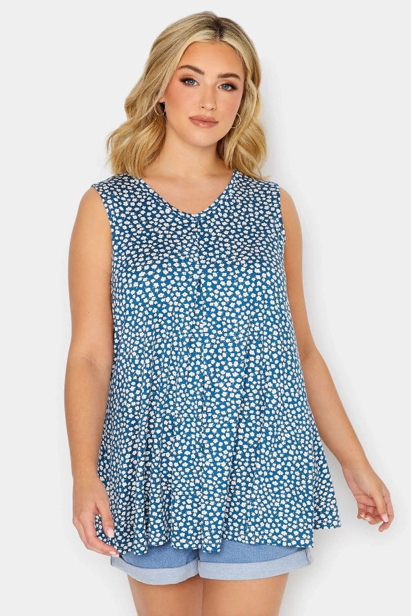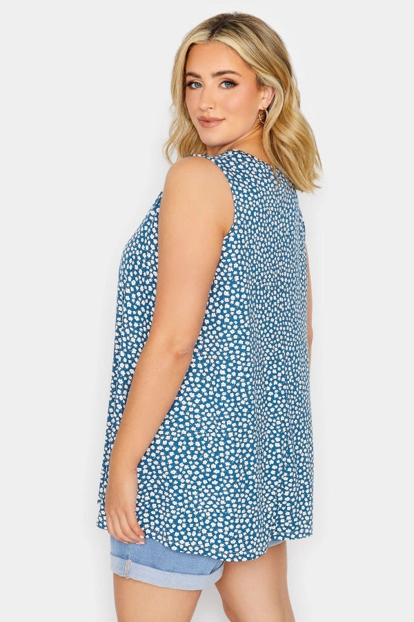 Büyük Beden Kolsuz V Yaka Desenli Likralı Bluz 302066
