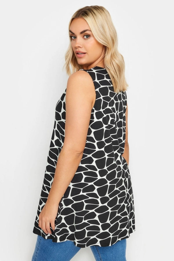 Büyük Beden Kolsuz V Yaka Desenli Likralı Bluz 321676