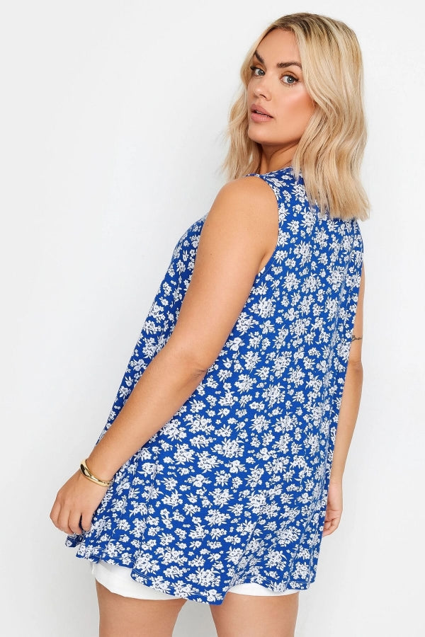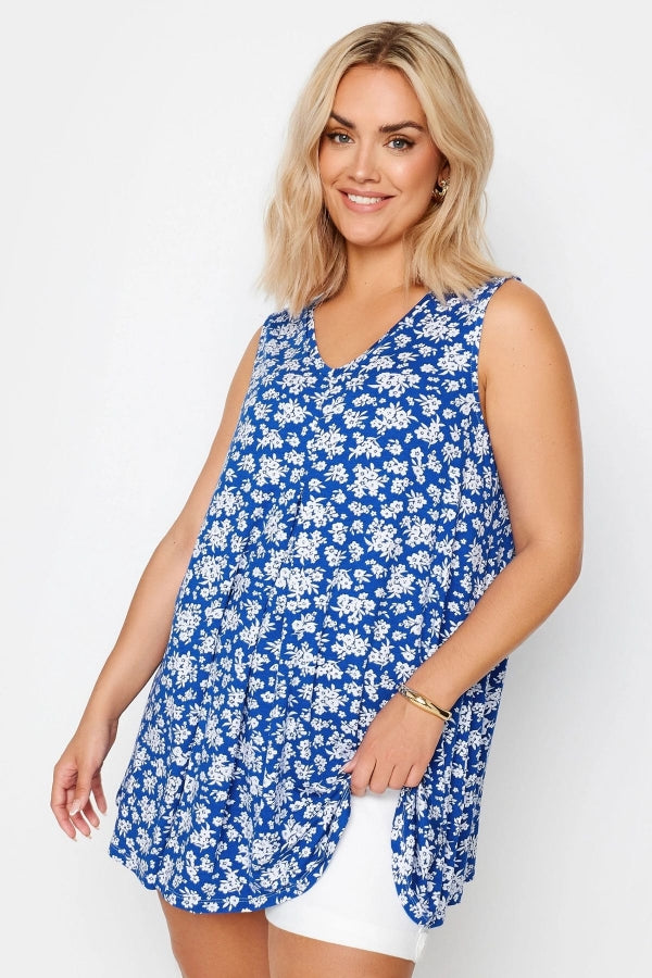 Büyük Beden Kolsuz V Yaka Desenli Likralı Bluz 321678