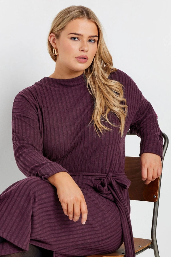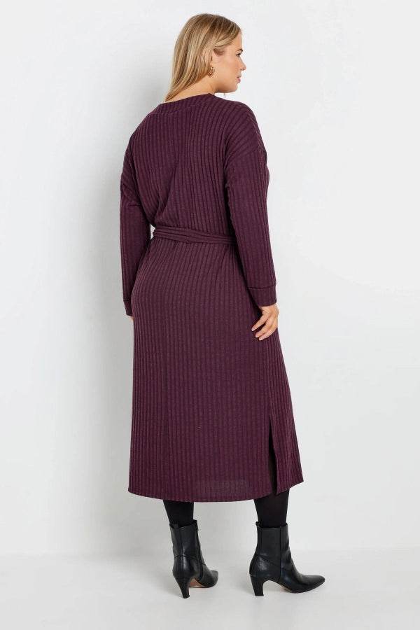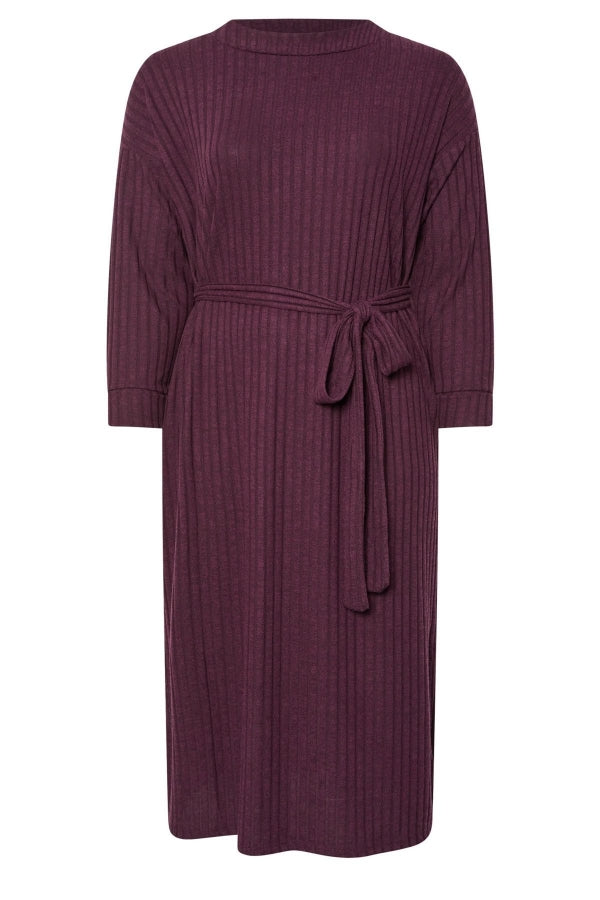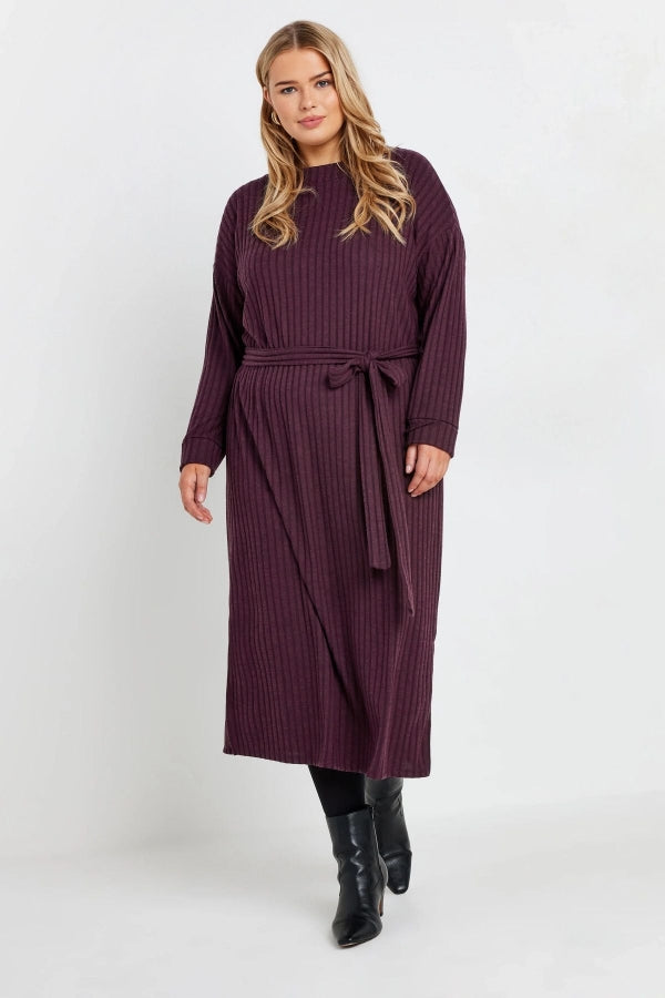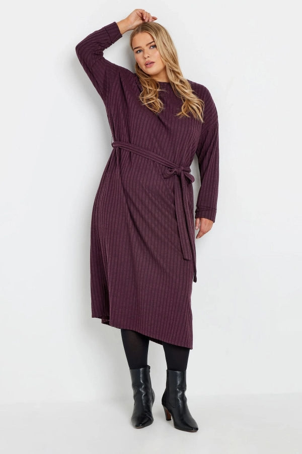 Büyük Beden Kuşaklı Düz Kesim Fitilli Uzun Kollu Astarsız Midi Elbise 322195