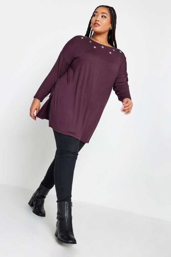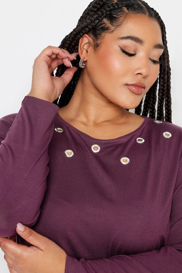 Büyük Beden Kuşgözü Detaylı Bisiklet Yaka Uzun Kollu Oversize Bluz 321291