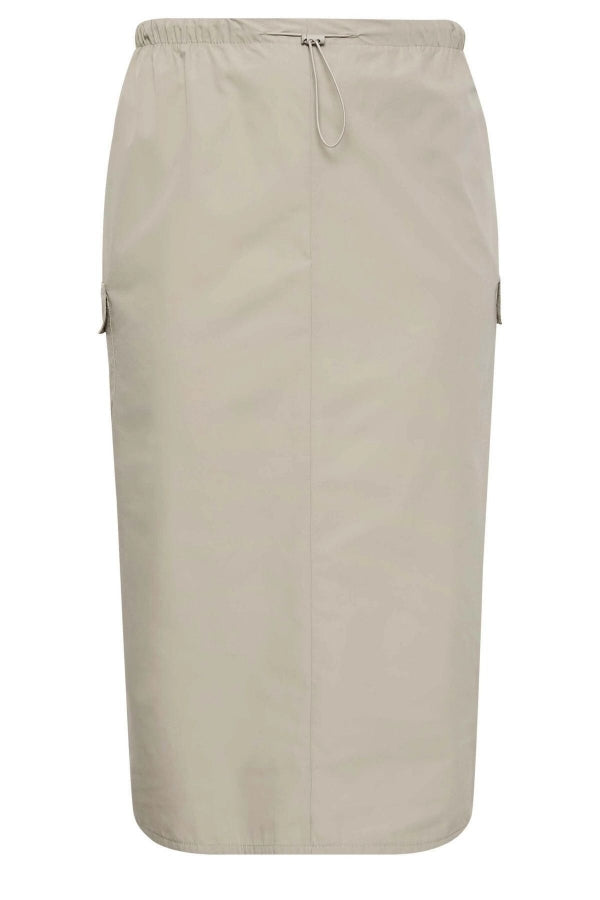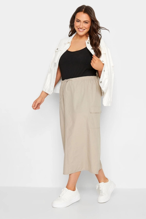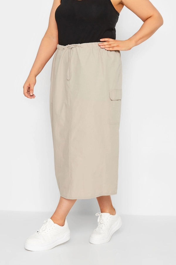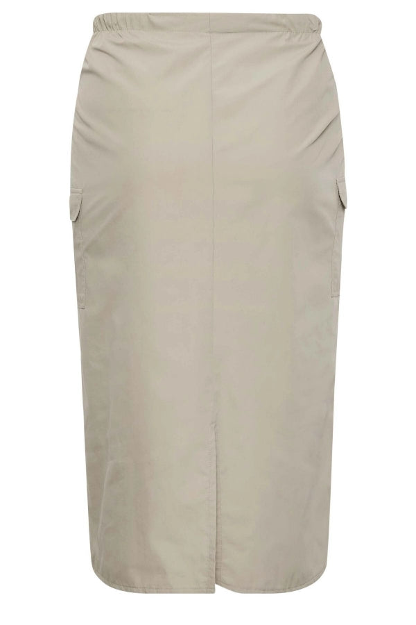 Büyük Beden Midi Boy Beli Büzgülü Arkadan Yırtmaçlı Kargo Etek 302038