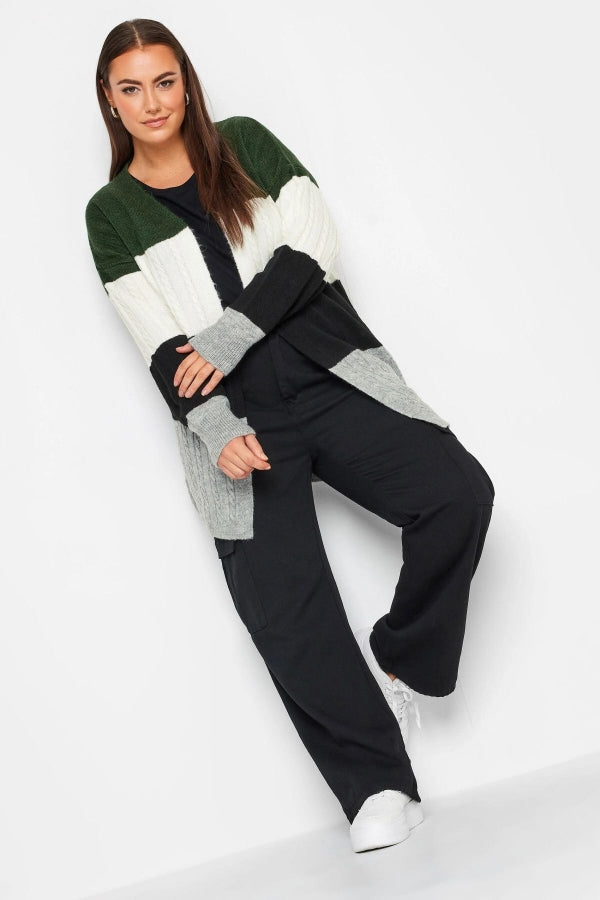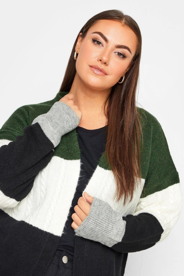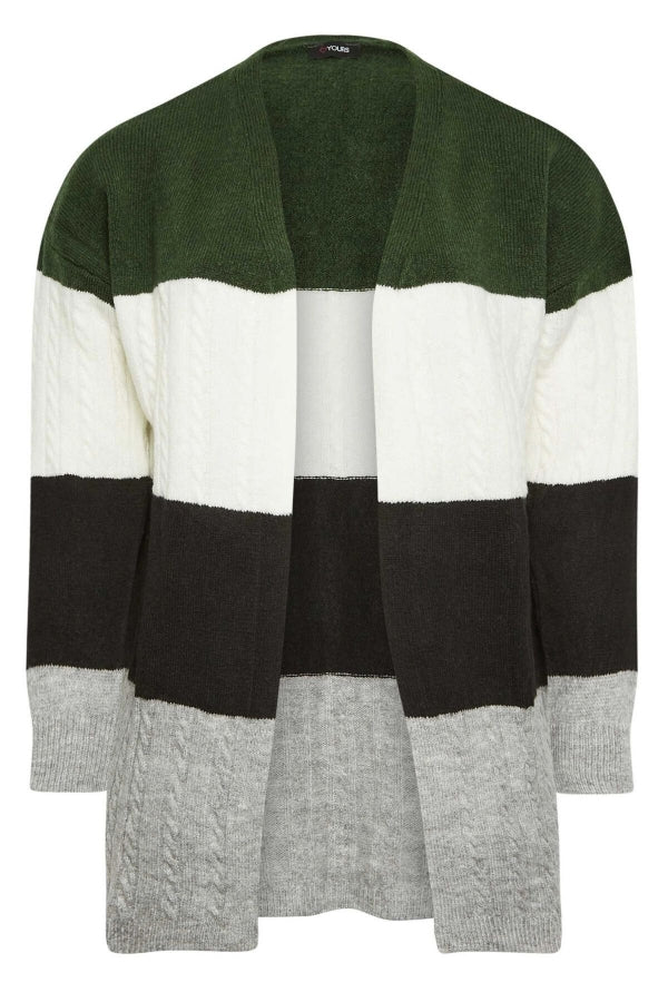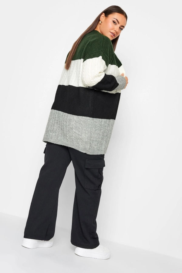 Büyük Beden Midi Boy Çizgili Uzun Kollu Triko Örme Hırka 302146