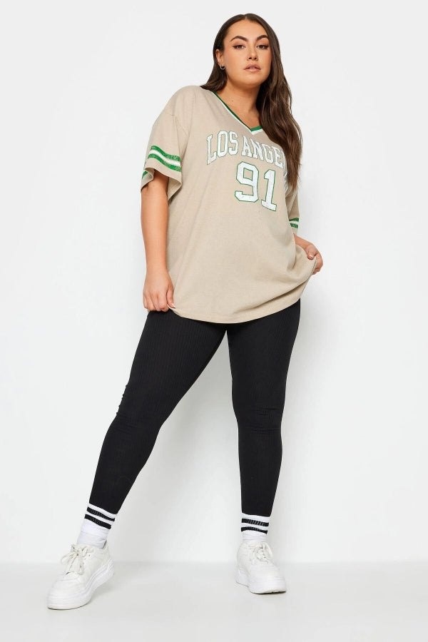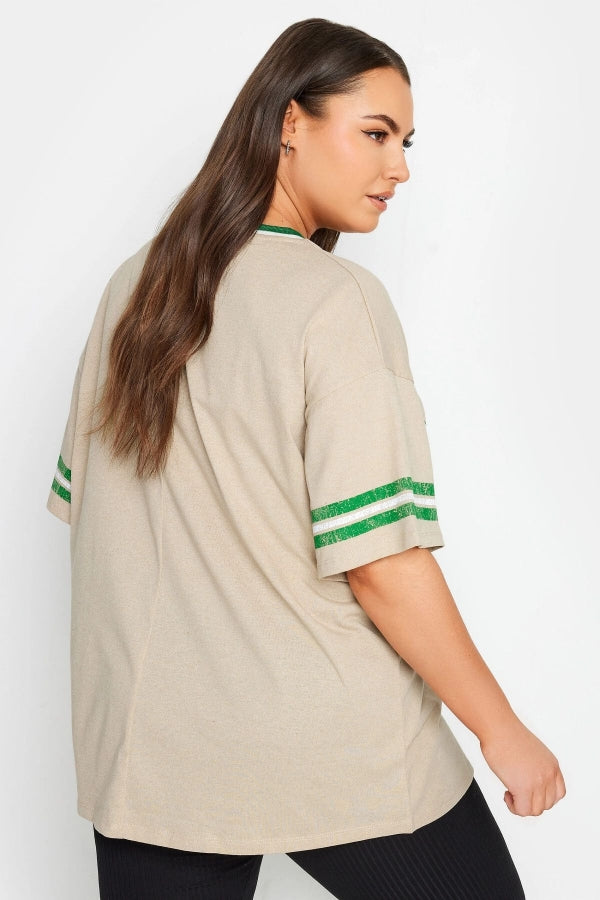 Büyük Beden Önü Baskılı V Yaka Kısa Kollu Uzun Kesim T-Shirt 302540