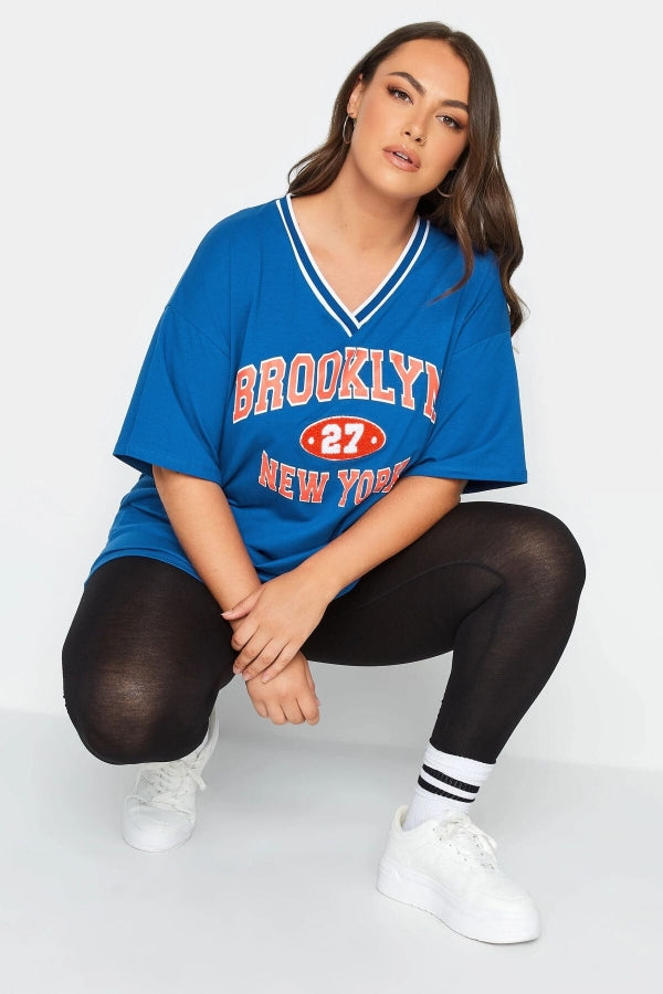 Büyük Beden Önü Baskılı V Yaka Yarım Kollu Uzun Kesim T-Shirt 302503