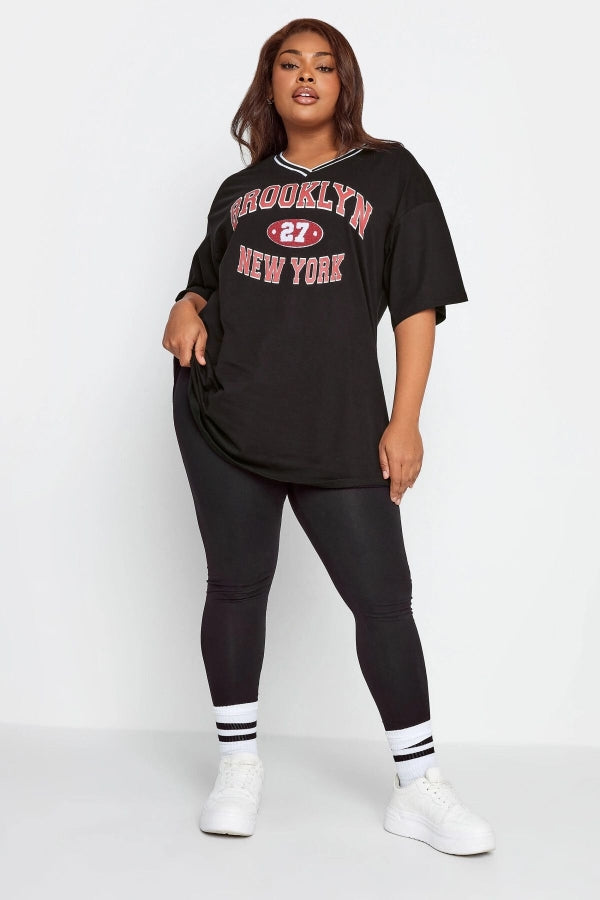 Büyük Beden Önü Baskılı V Yaka Yarım Kollu Uzun Kesim T-Shirt 302506