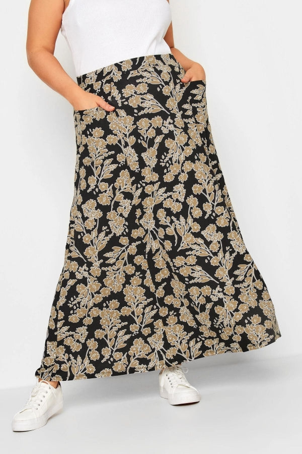 Büyük Beden Önü Çift Cepli Beli Lastikli Maxi Boy Etek 302287