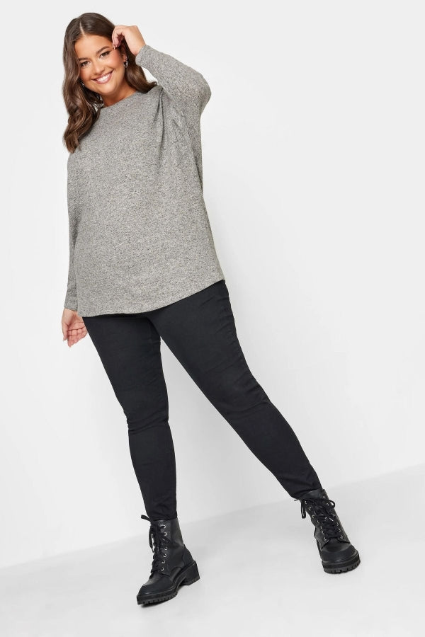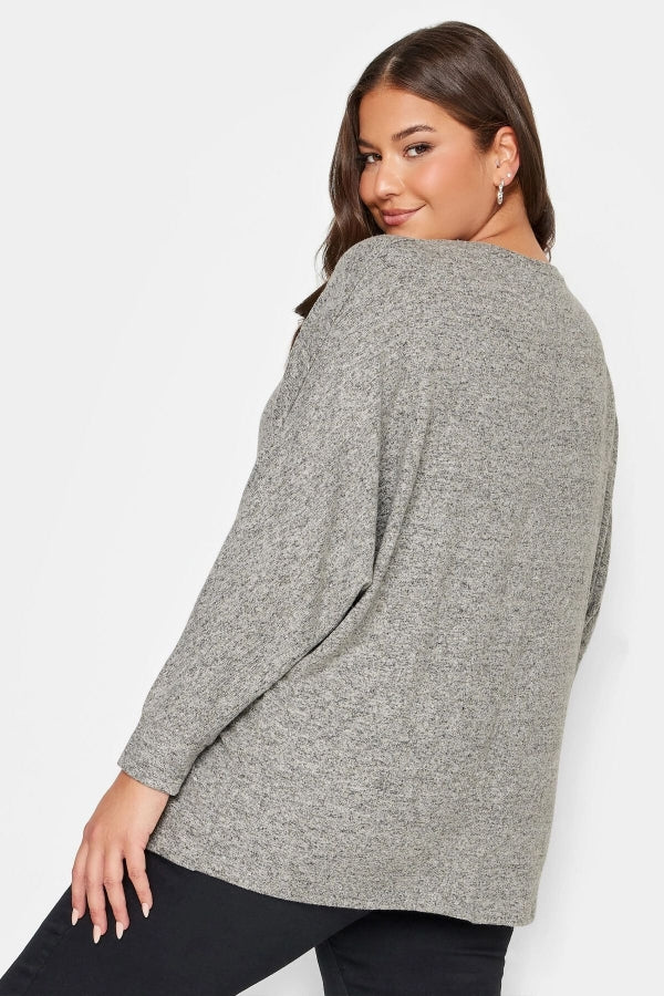 Büyük Beden Önü Dikiş Detaylı Yumuşak Dokulu Örme Bluz 302600