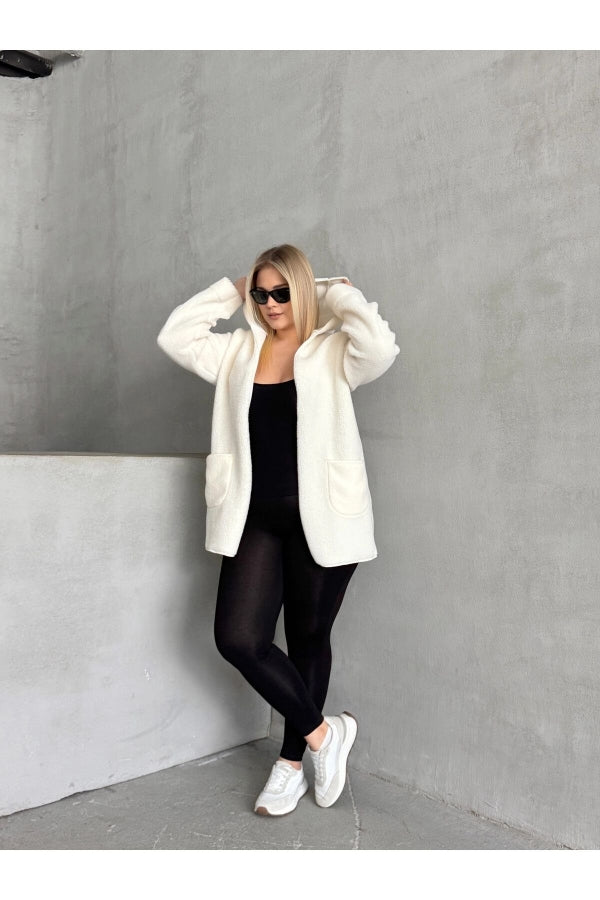 Büyük Beden Önü Kapamasız Cepli Kapüşonlu İnce Peluş Ceket 301256 Vervegrand Büyük Beden Önü Kapamasız Cepli Kapüşonlu İnce Peluş Ceket 301256 Vervegrand