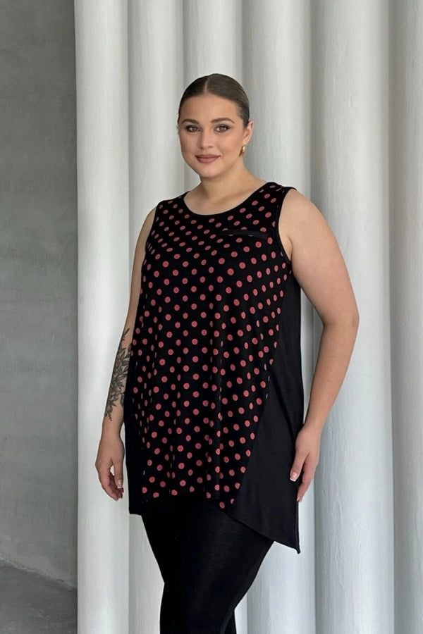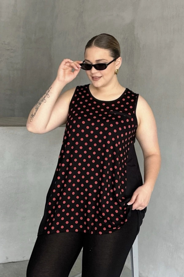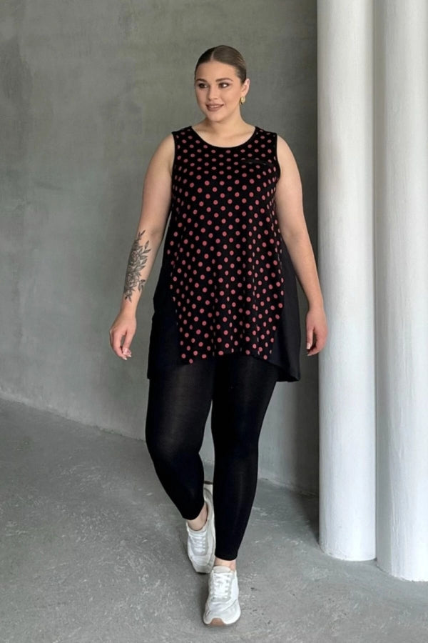 Büyük Beden Önü Puantiyeli Kolsuz Bluz 302253