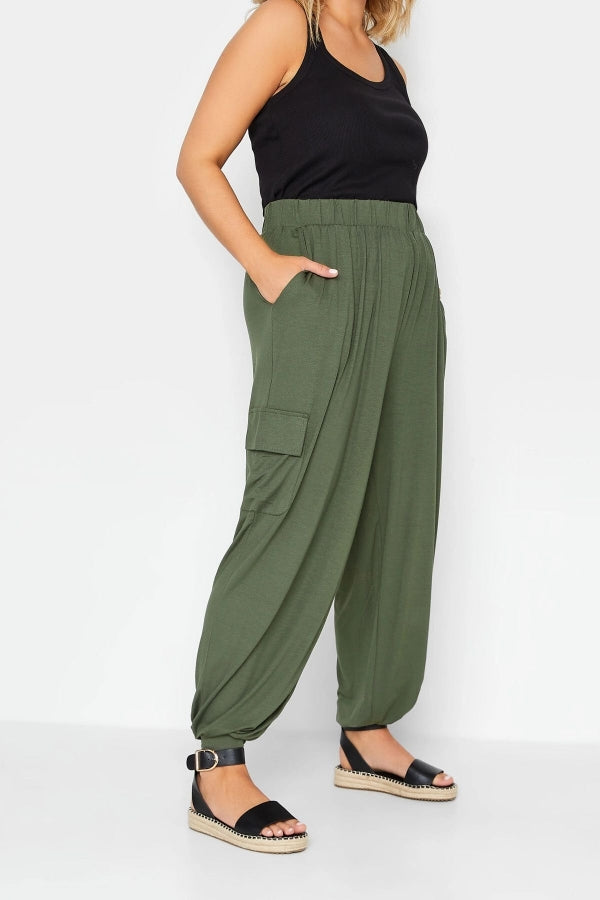 Büyük Beden Paçası Lastikli Cepli Likralı Esnek Kumaş Kargo Pantolon 143448