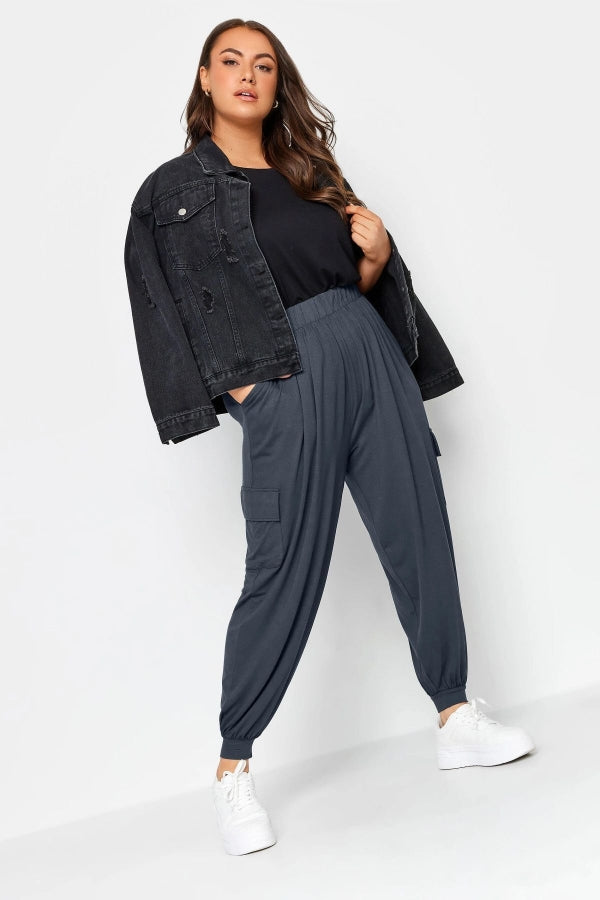 Büyük Beden Paçası Lastikli Cepli Likralı Esnek Kumaş Kargo Pantolon 143587