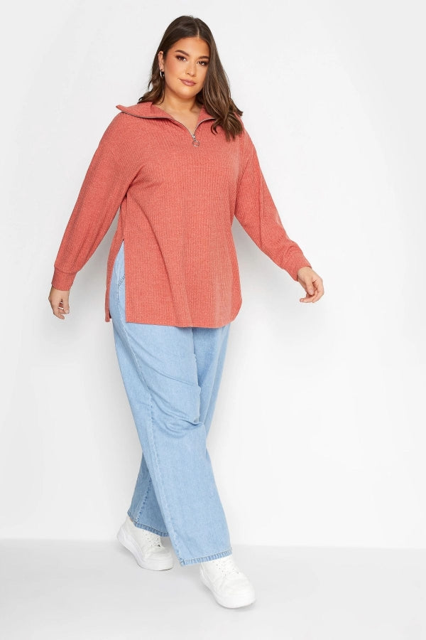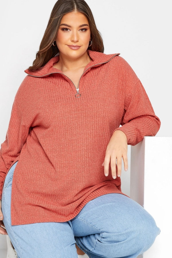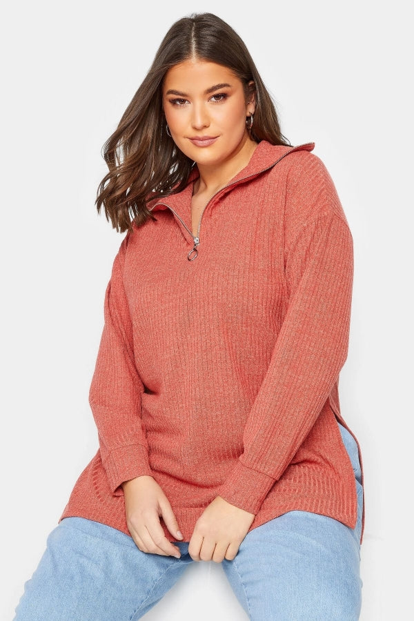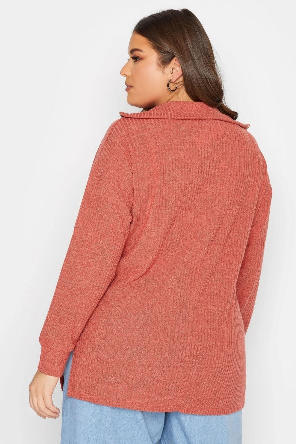 Büyük Beden Polo Yaka Fermuarlı Uzun Kollu Kazak 301745