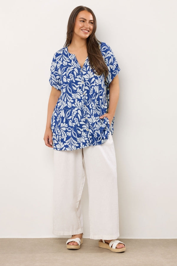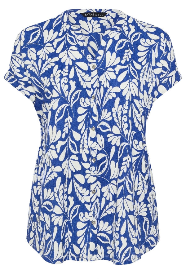Büyük Beden Polo Yaka Kısa Kollu Düğmeli Çiçek Desenli Bluz 616290