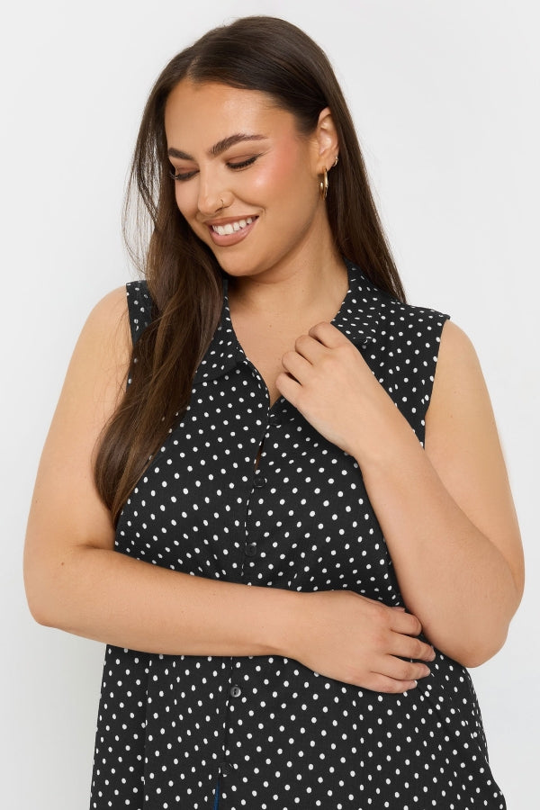 Büyük Beden Polo Yaka Sıfır Kol Düğmeli Puantiyeli T-shirt 303957