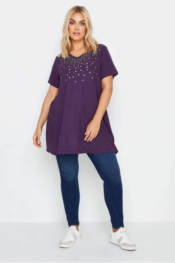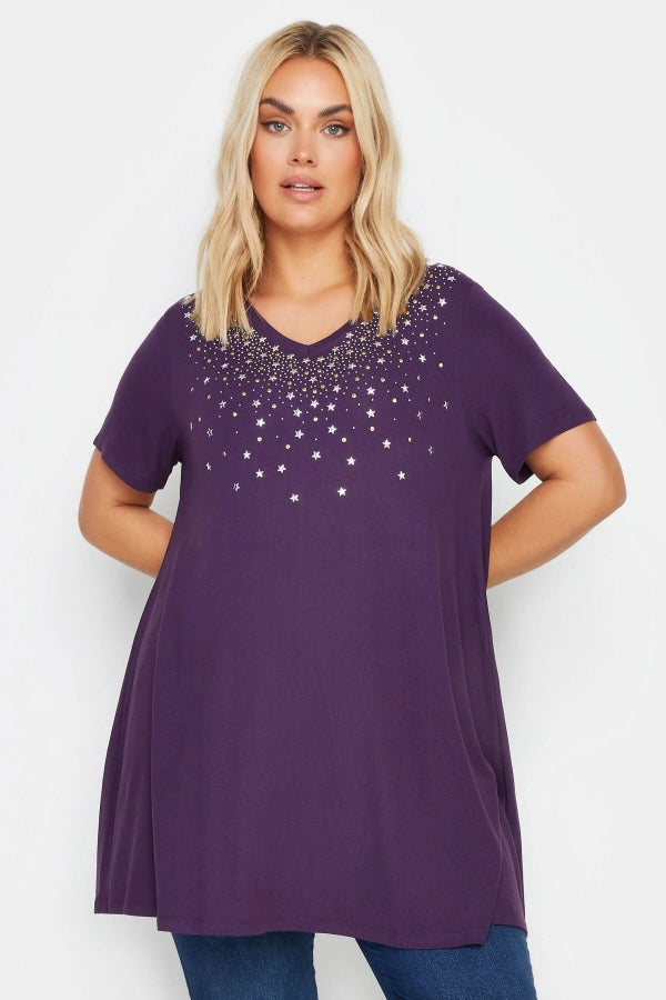 Büyük Beden Pul Detaylı V Yaka Kısa Kollu Bluz 303059