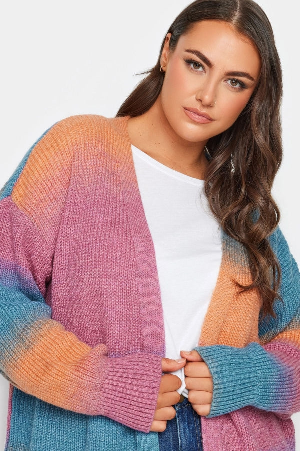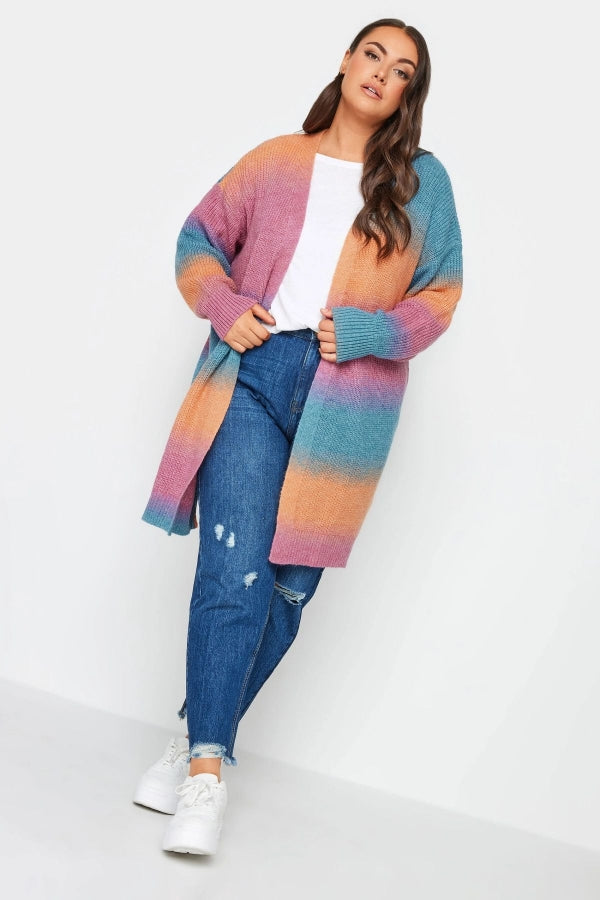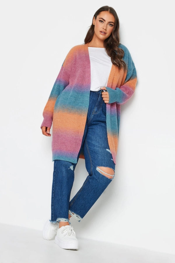 Büyük Beden Renk Geçişli Uzun Kollu Midi Boy Triko Hırka 302313