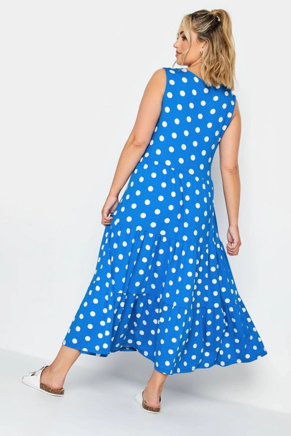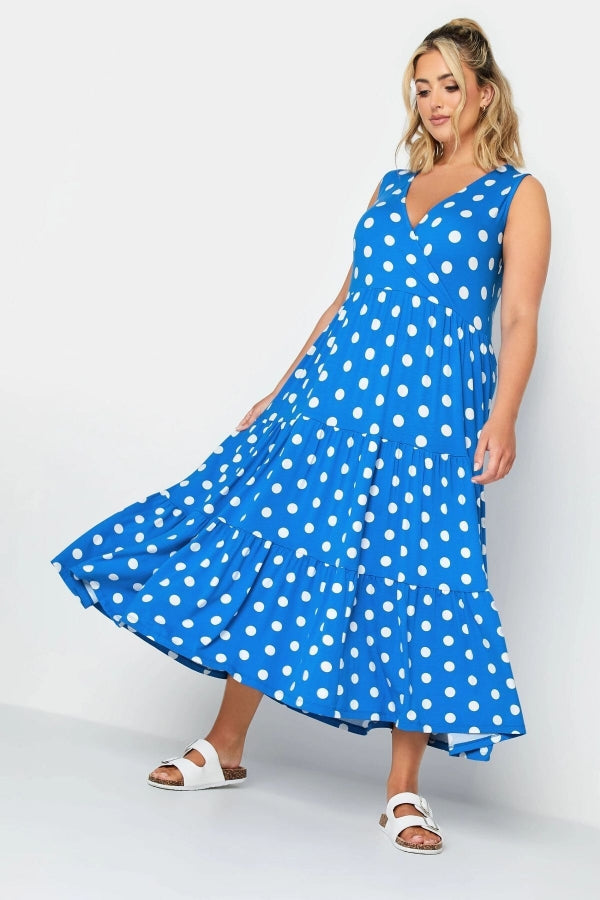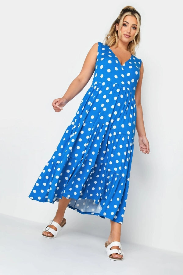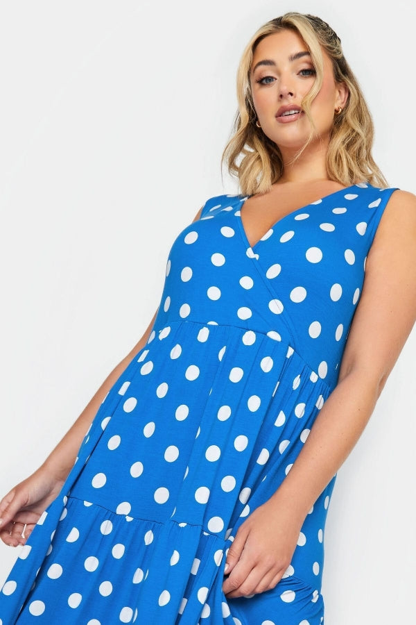 Büyük Beden Sıfır Kol Büyük Puantiyeli V Yaka Midi Boy Elbise 302353