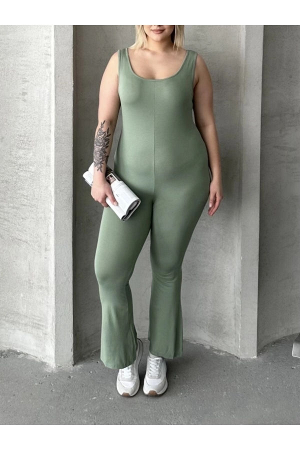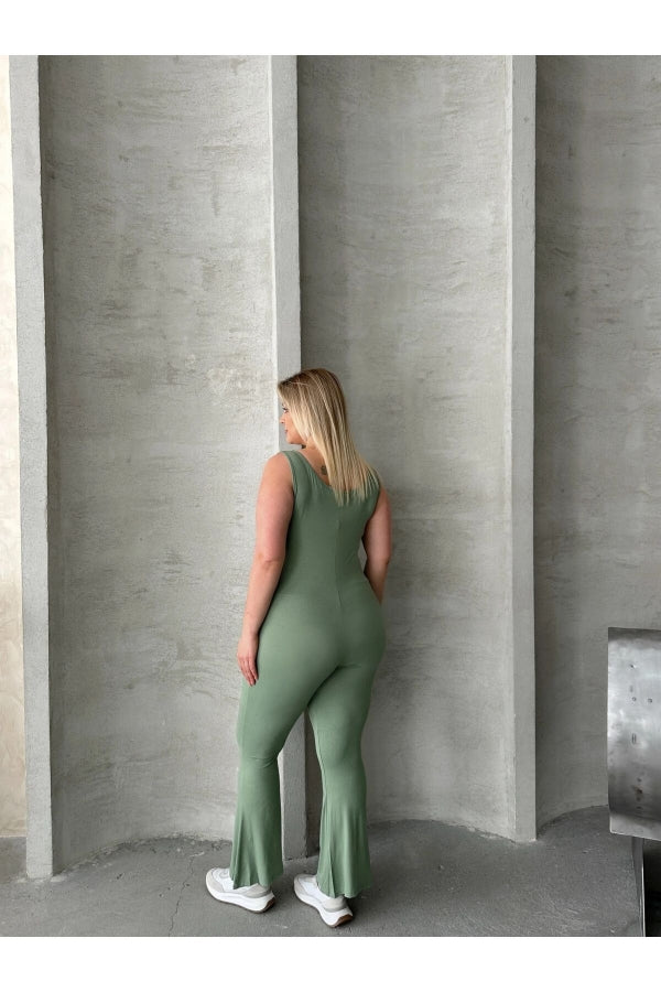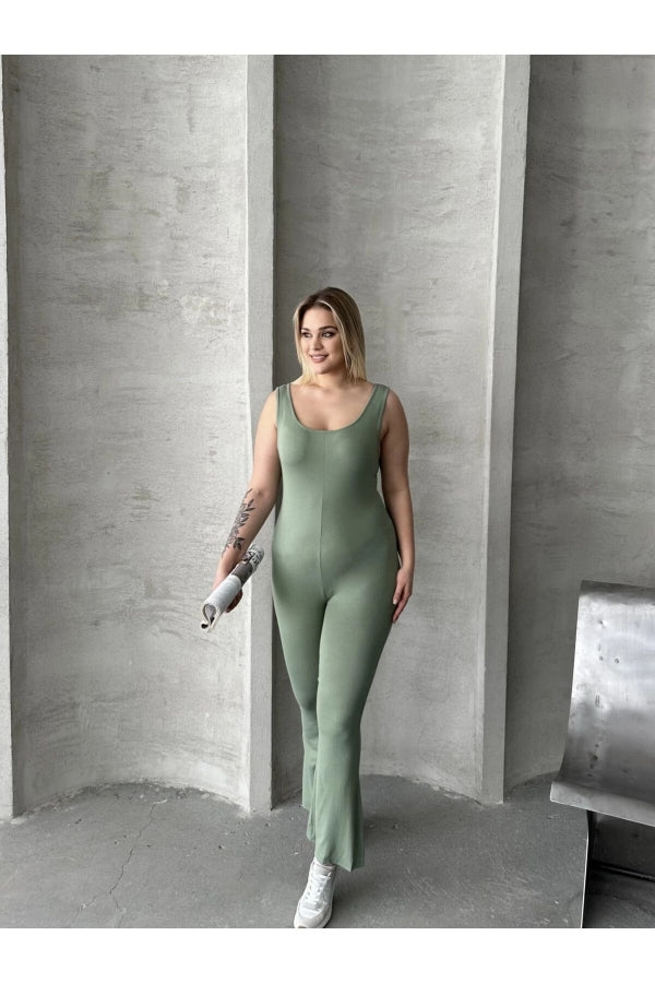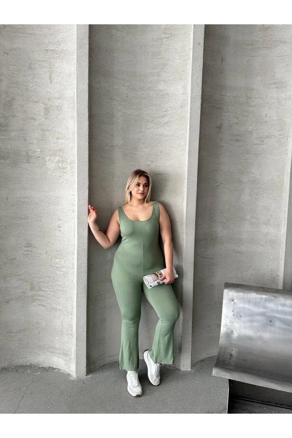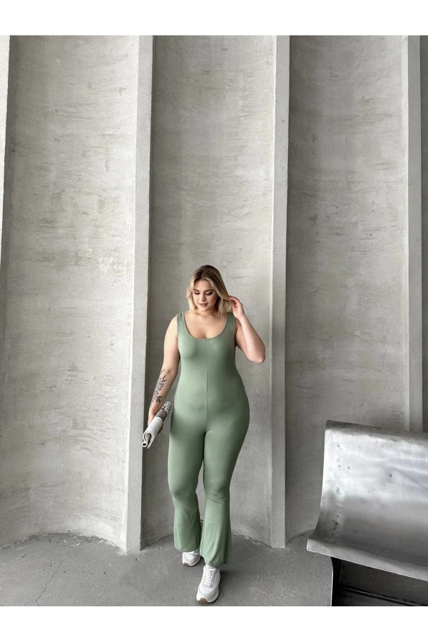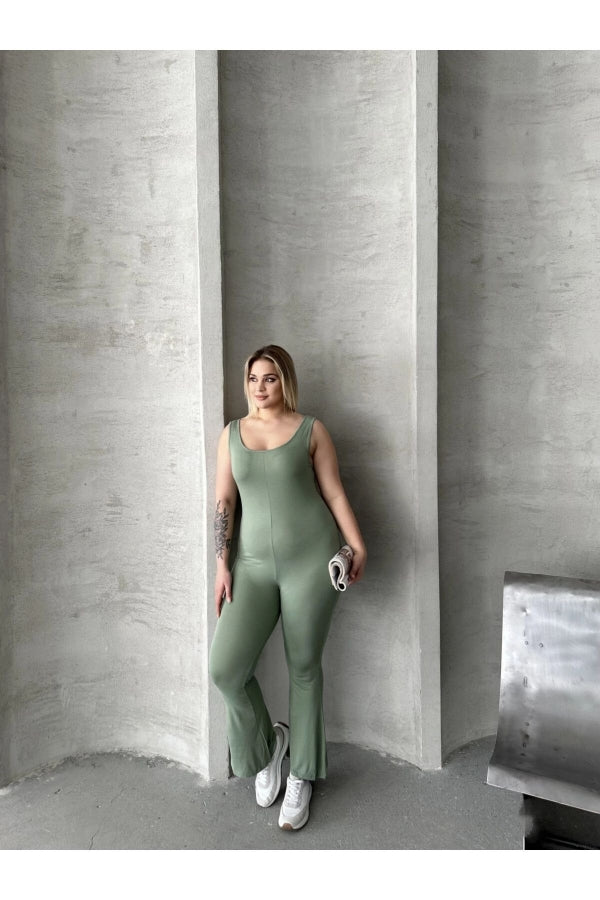 Büyük Beden Sıfır Kol İspanyol Paça Kapamasız Esnek Tulum 224983