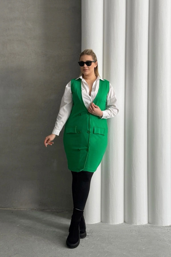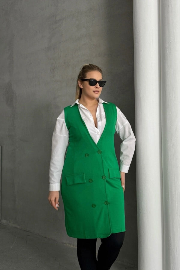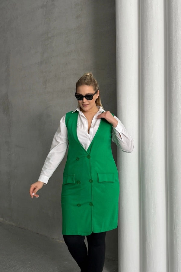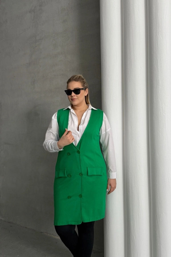 Büyük Beden Sıfır Kol Önü Düğmeli Cep Görünümlü Hırka 300860