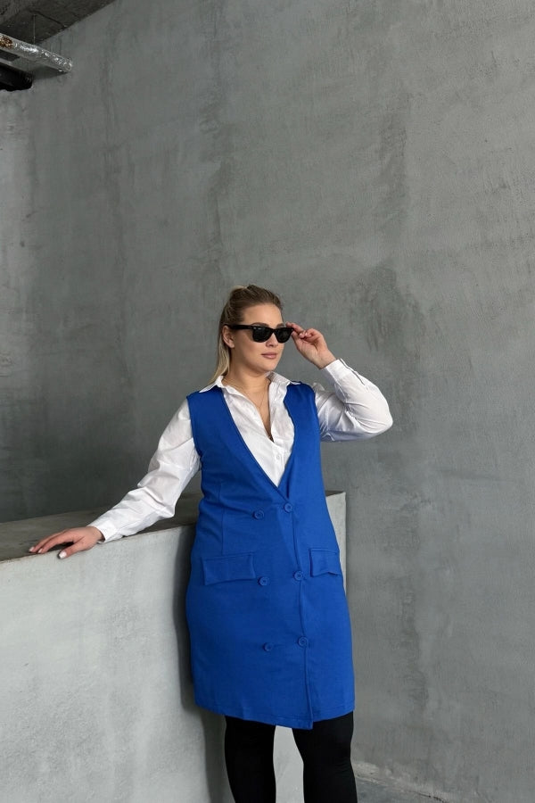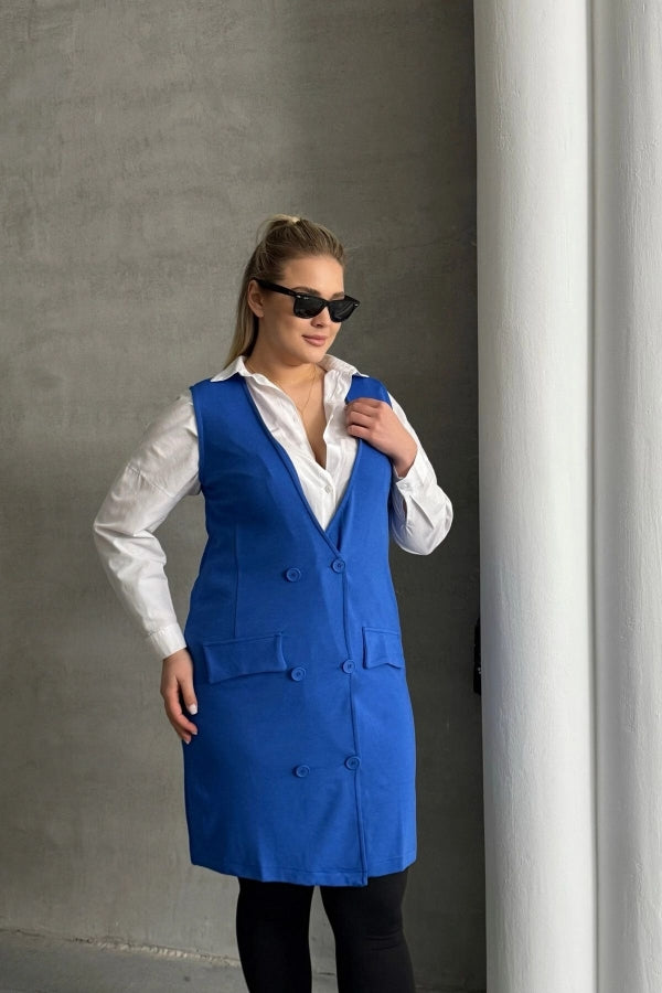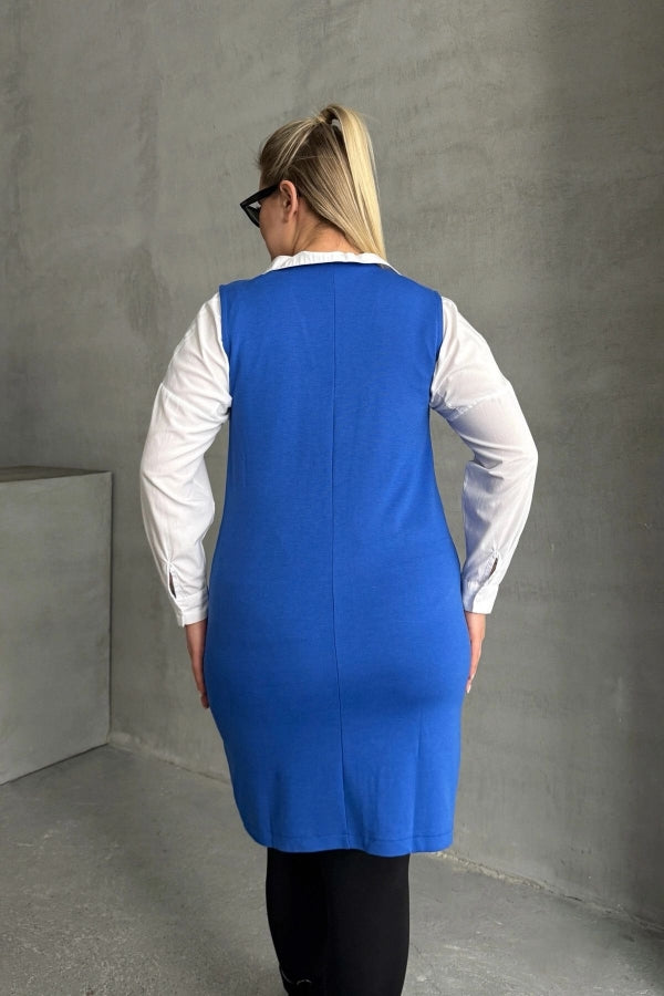Büyük Beden Sıfır Kol Önü Düğmeli Cep Görünümlü Hırka 300862