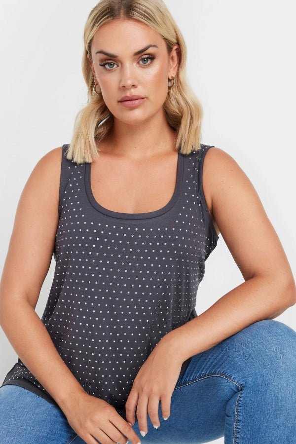 Büyük Beden Sıfır Kol Önü Taş İşlemeli Bisiklet Yaka Bluz 321850