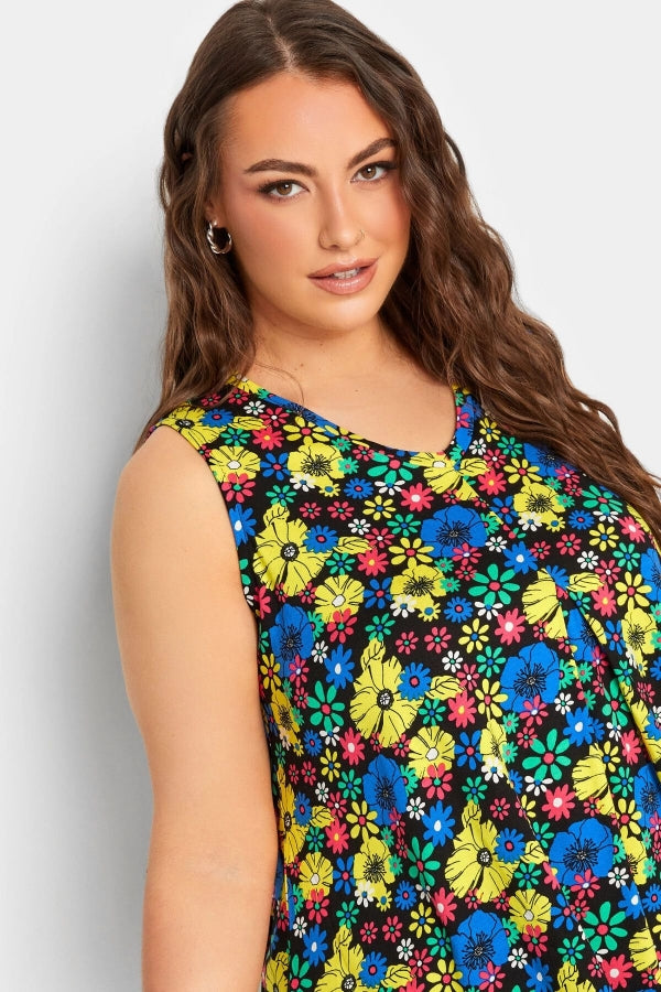 Büyük Beden Sıfır Kol V Yaka Çiçek Desenli Bluz 302262