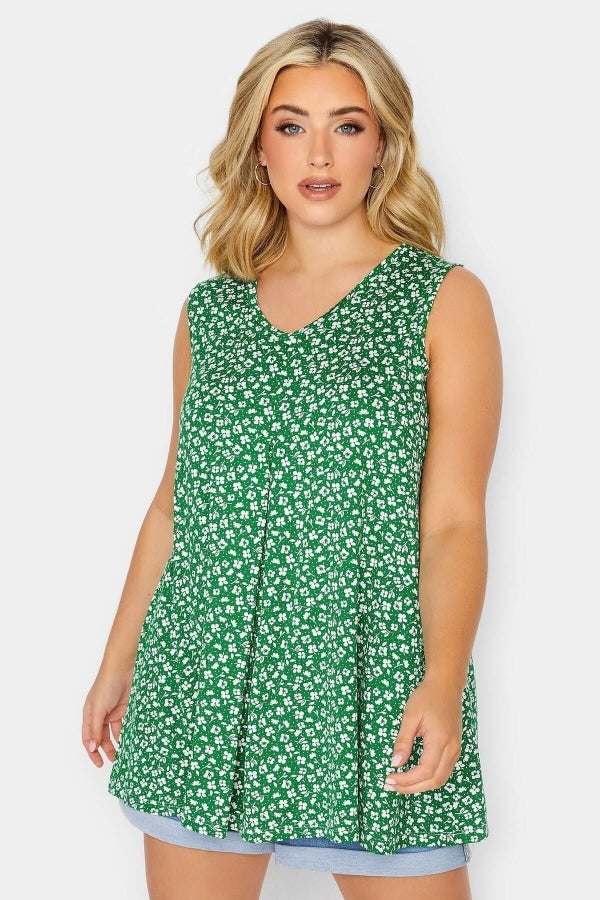 Büyük Beden Sıfır Kol V Yaka Eteği Bollaşan Çiçek Desenli Bluz 302068
