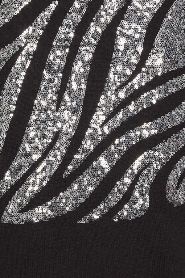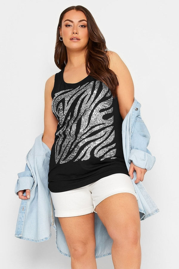 Büyük Beden Sıfır Kol Zebra Desenli Payet İşlemeli Bluz 302091