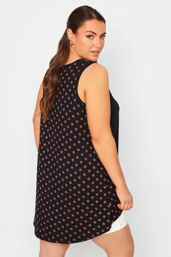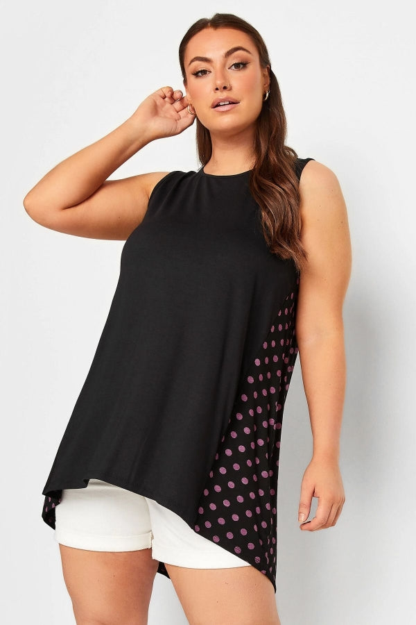 Büyük Beden Sırtı Puantiyeli Asimetrik Kesim Sıfır Kol Bluz 302248