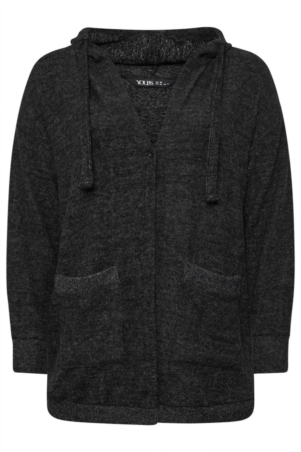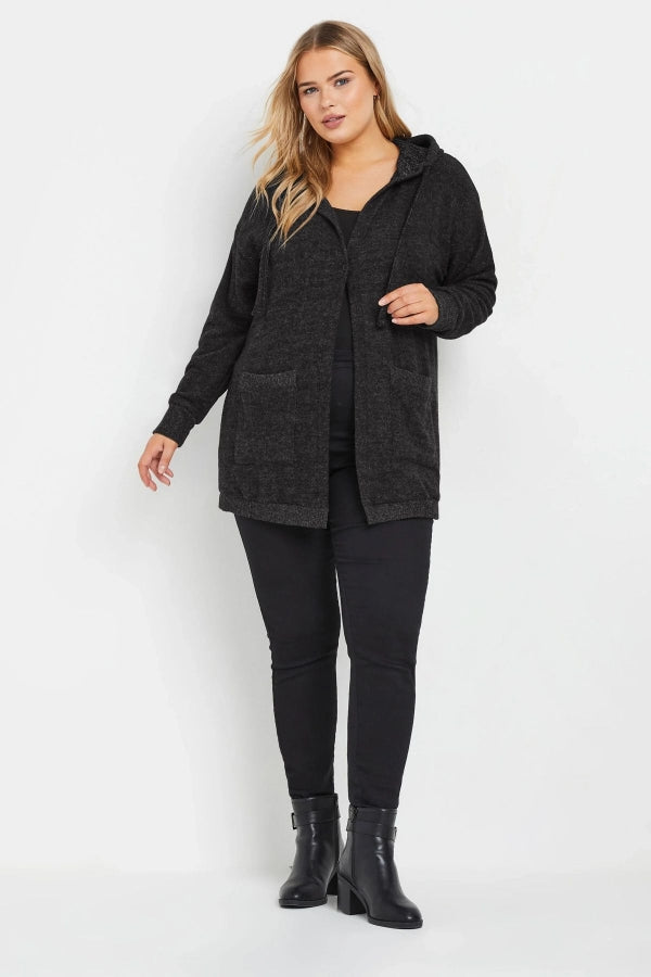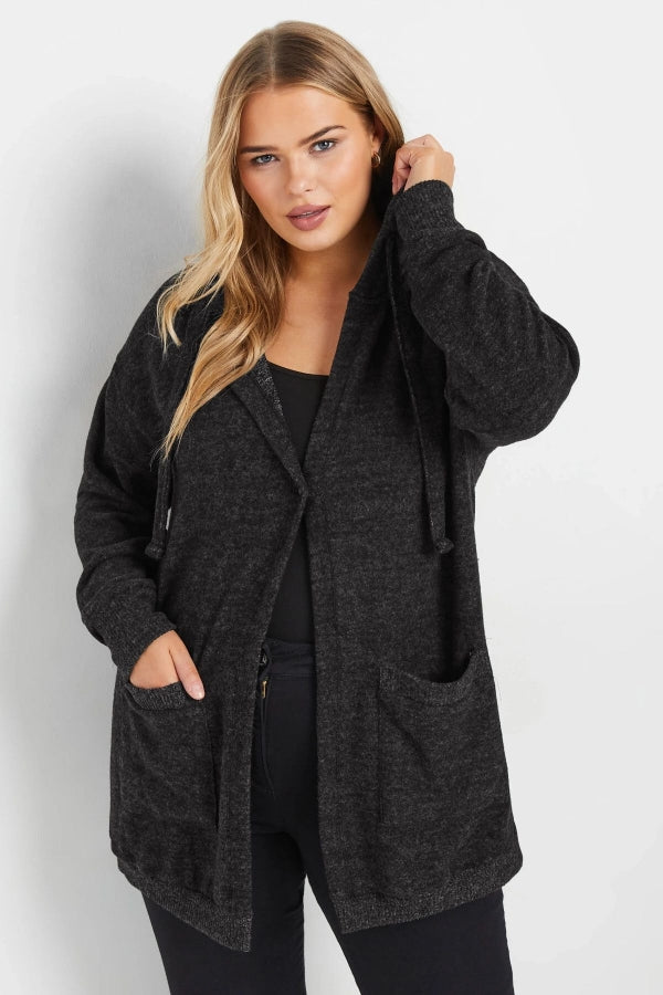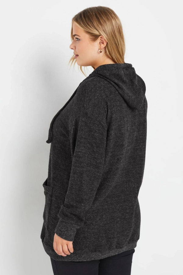 Büyük Beden Soft Touch Kapüşonlu Uzun Kollu Cepli Hırka 303593