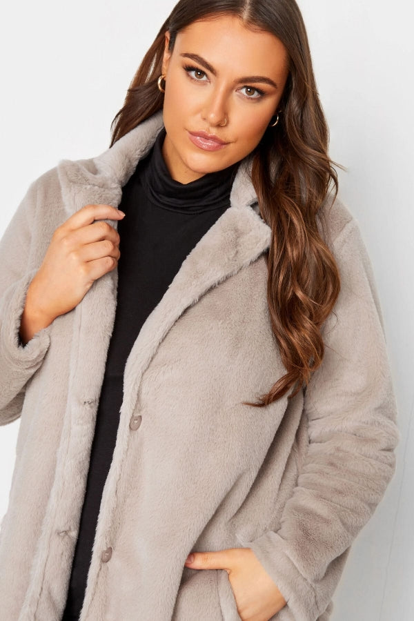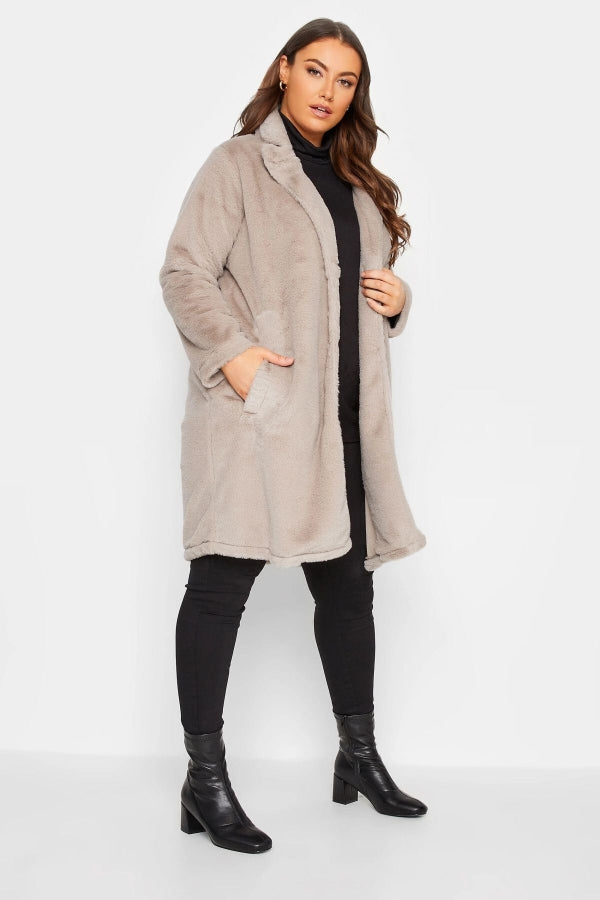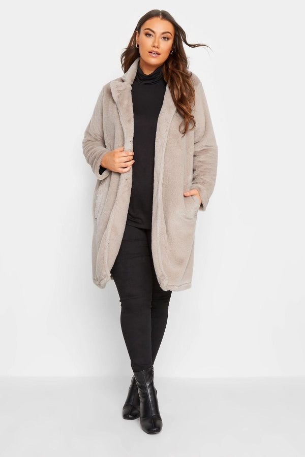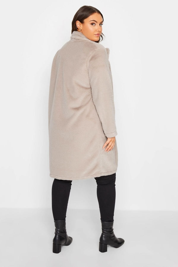 Büyük Beden Suni Kürk Uzun Kesim Cepli Düğmeli Kaban 301582